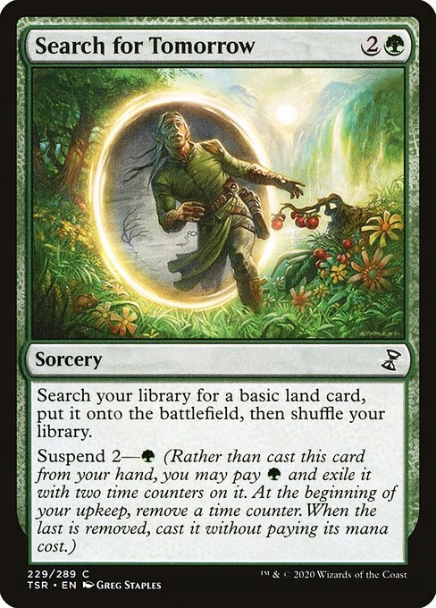 - Текст карты: Поиск библиотеки для базовой наземной карты, положите ее на поле битвы, затем шаффл. Приостановка 2— {g} (rathher, чем бросьте эту карту из вашей руки, вы можете заплатить {g} и изгнать ее с двумя временными счетчиками на ней. В начале вашего содержания удалите счетчик времени. Когда последнее удаляется, вы можете разыграть его, не заплатив его затрат на человека.