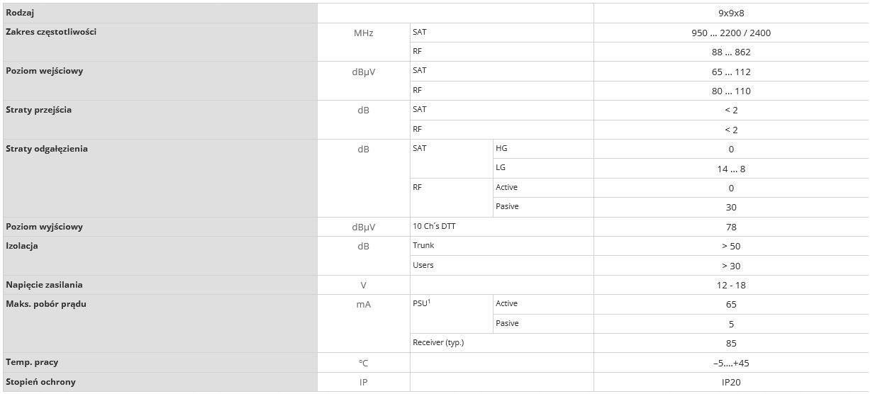 Multiswitch 9/8 Televes EurosWitch + 12 В питания питания