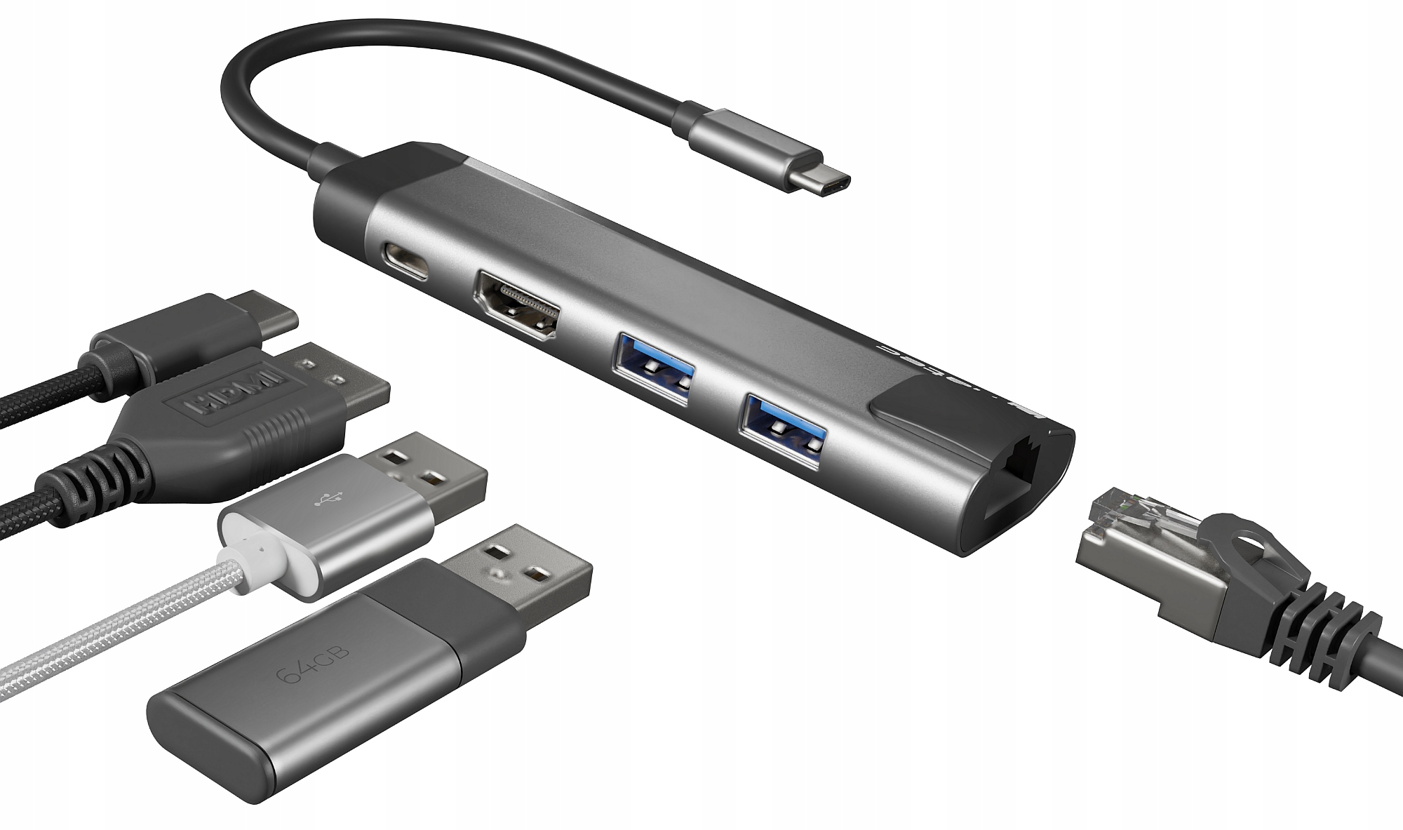 Компактный многопорт, оснащенный 5 портами, среди которых вы найдете 2 сокета USB 3.0, порт HDMI 1.4, поддерживающие разрешение 4K и даже сокет RJ-45 (1 ГБ/ с) и USB-C, поддерживающий стандарт предоставления мощности 3.0. Использование аксессуаров никогда не было таким удобным.