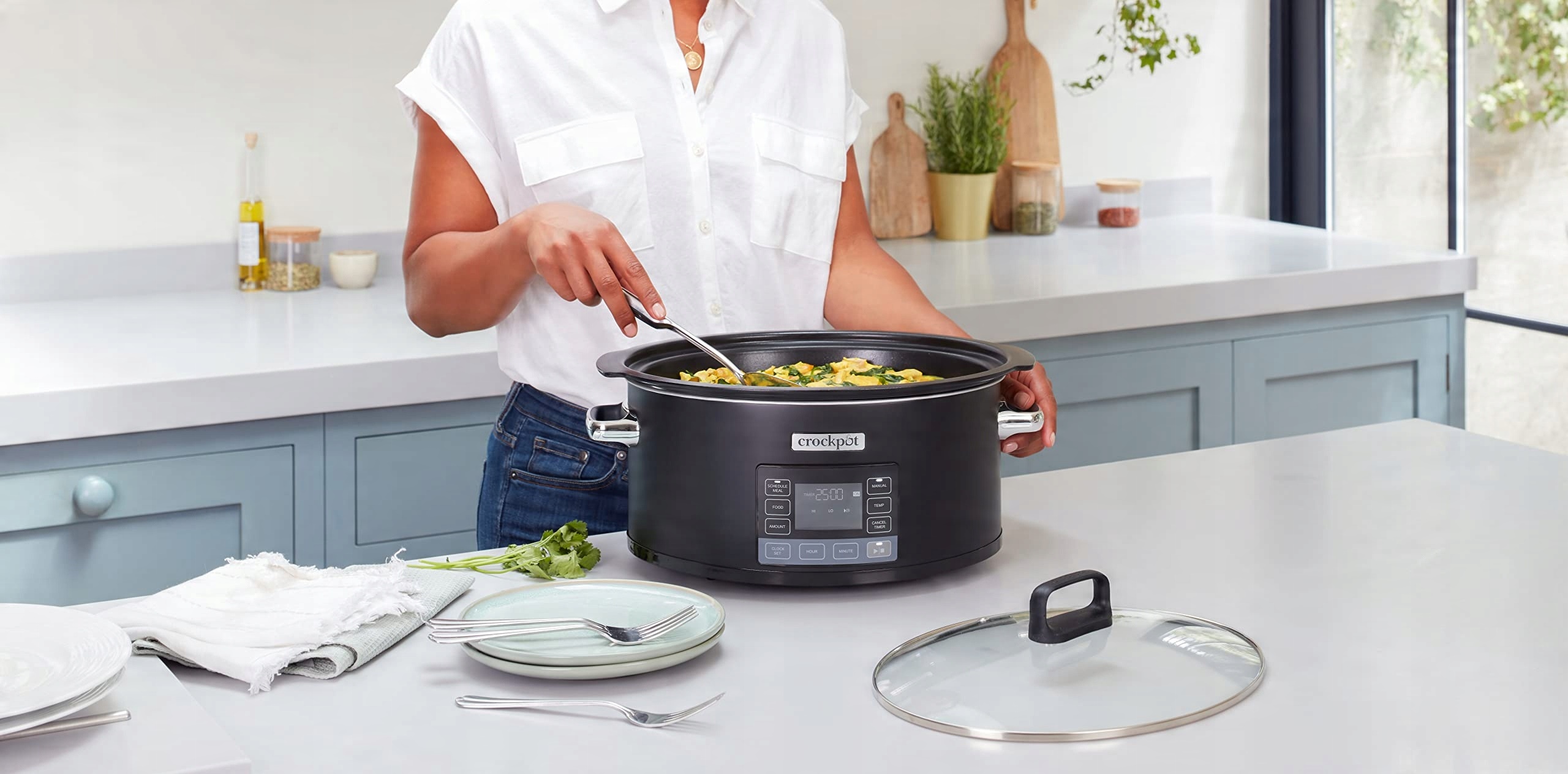Мультиварка Crockpot TimeSelect позволяет использовать автоматические или ручные настройки с таймером и настройками приготовления для высоких и низких температур. Вы можете запрограммировать его на 12 часов вперед и каждый раз получать идеально приготовленную еду. Автоматическая функция «Поддержание тепла» гарантирует, что ваше блюдо сохранит оптимальную температуру подачи.