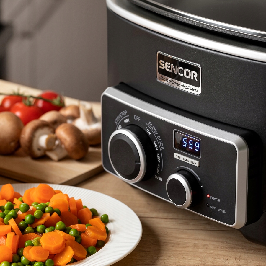 НЕСКОЛЬКО ПРОГРАММ, МНОГО СПОСОБОВ ПРИГОТОВЛЕНИЯ: Мультиварка предлагает 3 классических режима приготовления и 2 режима медленного приготовления. Благодаря медленному приготовлению бульон может вариться до 12 часов, вкуснейший соус – 8 часов, и это только примеры. Эта мультиварка является надежным устройством практически для всех термических обработок, а в качестве бонуса компания Sencor добавила функцию Keep Warm, благодаря которой мультиварка сохраняет еду теплой до 12 часов.