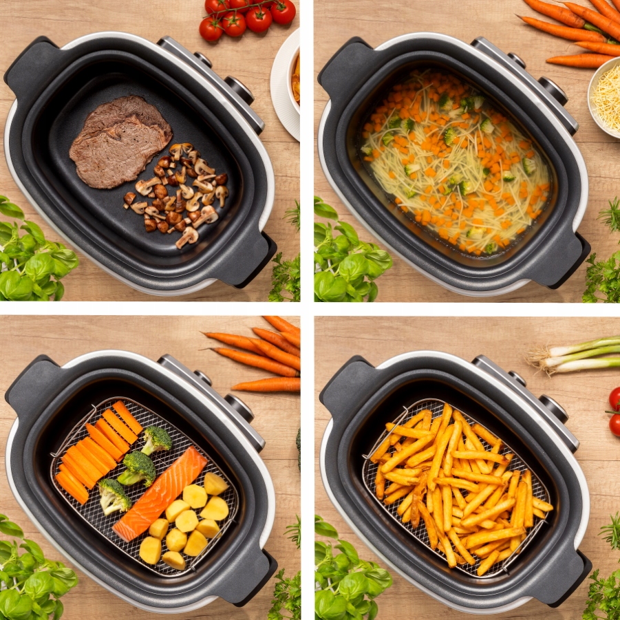 Приготовление нежных и ароматных блюд еще никогда не было таким простым! Эта стильная мультиварка вмещает пять порций в удобной съемной кастрюле, что позволяет удобно подавать блюда прямо на стол и легко мыть.