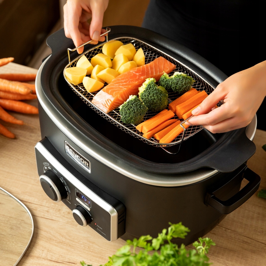 Sencor SPR 6100BKS — электрическая мультиварка, которая подойдет на любой кухне. Медленное приготовление сохраняет вкус и запах еды, а сами блюда можно приготовить без добавления жира или с минимальным количеством жира. С помощью этого многофункционального устройства можно жарить, готовить на пару и готовить еду традиционным способом – в воде.