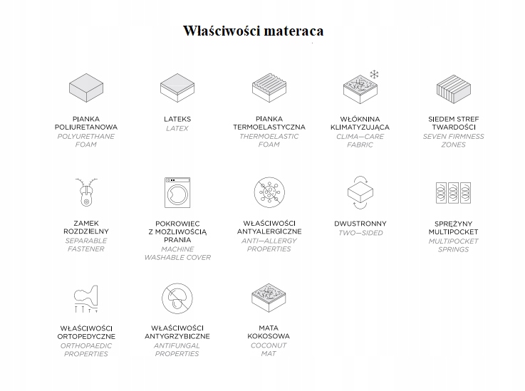 - Матрас использует высококачественную ткани. Он был сшит с помощью полиэстера в трикотаж с весом 480 г/м2. Такая обложка обладает антиаллергическими свойствами и приятно на ощупь. Крышка может быть удалена и промыта в стиральной машине при 40 градусах. Кроме того, 3D -сетка использовалась по бокам, что гарантирует правильную вентиляцию матраса