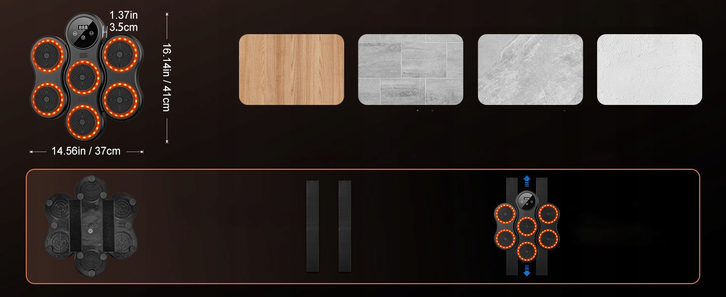 - ✔ оснащен 9 режимами для адаптации к большинству тренировочных целей, он автоматически имеет значение, когда цель удара будет сиять, и вы начинаете бить.
