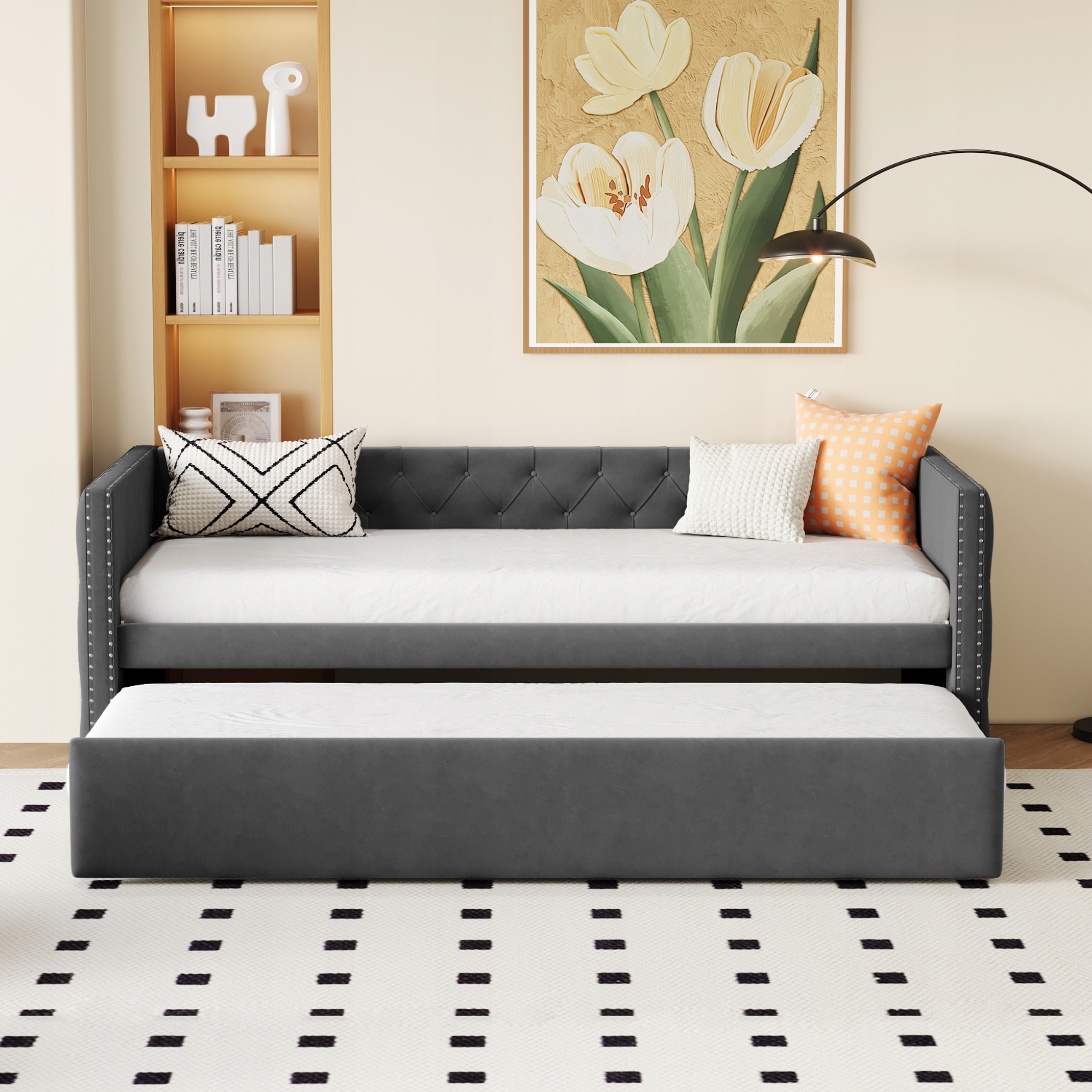 Классический стиль -Внешний вид этого дивана сгиба сочетает в себе элементы кнопки с технологией Pull Point, с полным и трехмерным моделированием, которое добавляет современную и стильную атмосферу и улучшает общую эстетику декора комнаты. Велюровая ткань - эта обитая кровать изготовлена из мягкой кожи, дружелюбной велюровой ткани, которая создает удобное и приятное спальное пространство. Он доступен в простых и универсальных цветах: бежевый, светло -серый и темно -серый, благодаря которому соответствует много стилей интерьера.