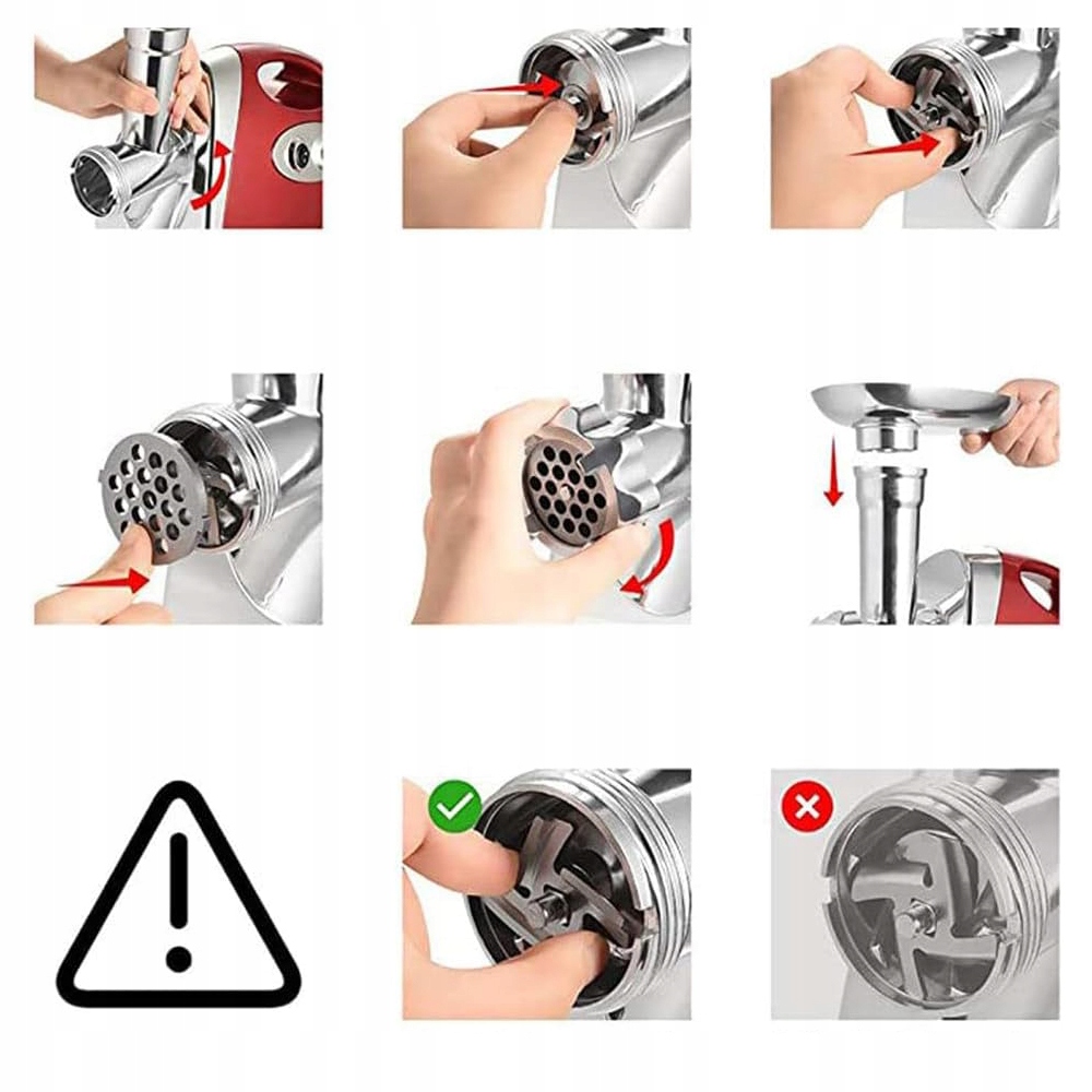 ✅Функция реверса: Домашняя мясорубка из нержавеющей стали имеет настройку реверса (кнопка «R»). Если произойдет засорение, вы можете переместить переключатель ON/0/R в положение «R», лопасть шланга повернется в противоположном направлении, и вы сможете опорожнить насадку.