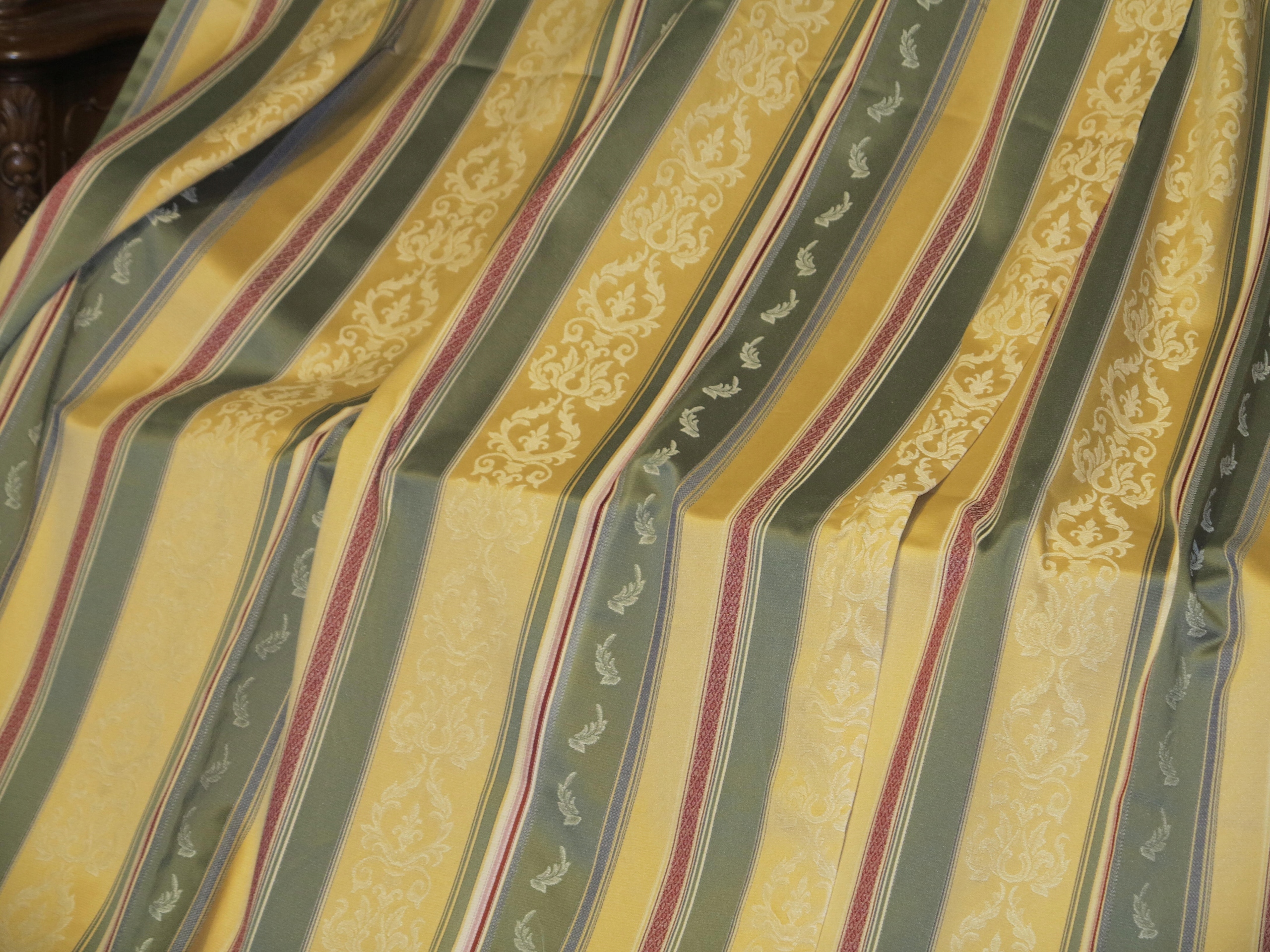 ДЛЯ АНТИКВАРИАТА - МЯГКАЯ, СТИЛЬНАЯ ШТОРА С ПОЛОСАМИ ЛЮДВИКО И ШТАМПАННЫМ УЗОРОМ. ПОЛОСЫ ЗЕЛЕНОГО, НОРЫ И ЗОЛОТАЯ. ДОПОЛНИТЕЛЬНО НАШИВАНЫ СТИЛЬНЫМ УЗОРОМ НА ТКАНИ.