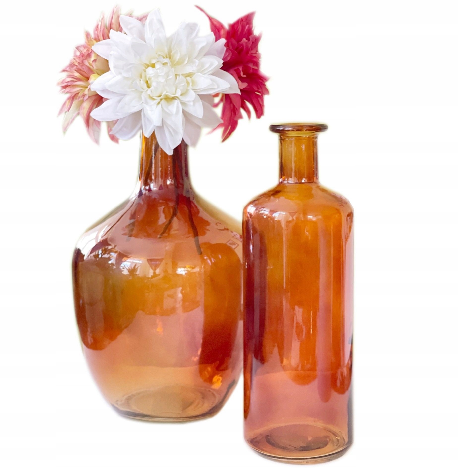 РУЧНАЯ РАБОТА / КОМПЛЕКТ 2 x СТЕКЛЯННАЯ ВАЗА-БУТЫЛКА, цвет ЯНТАРЬ