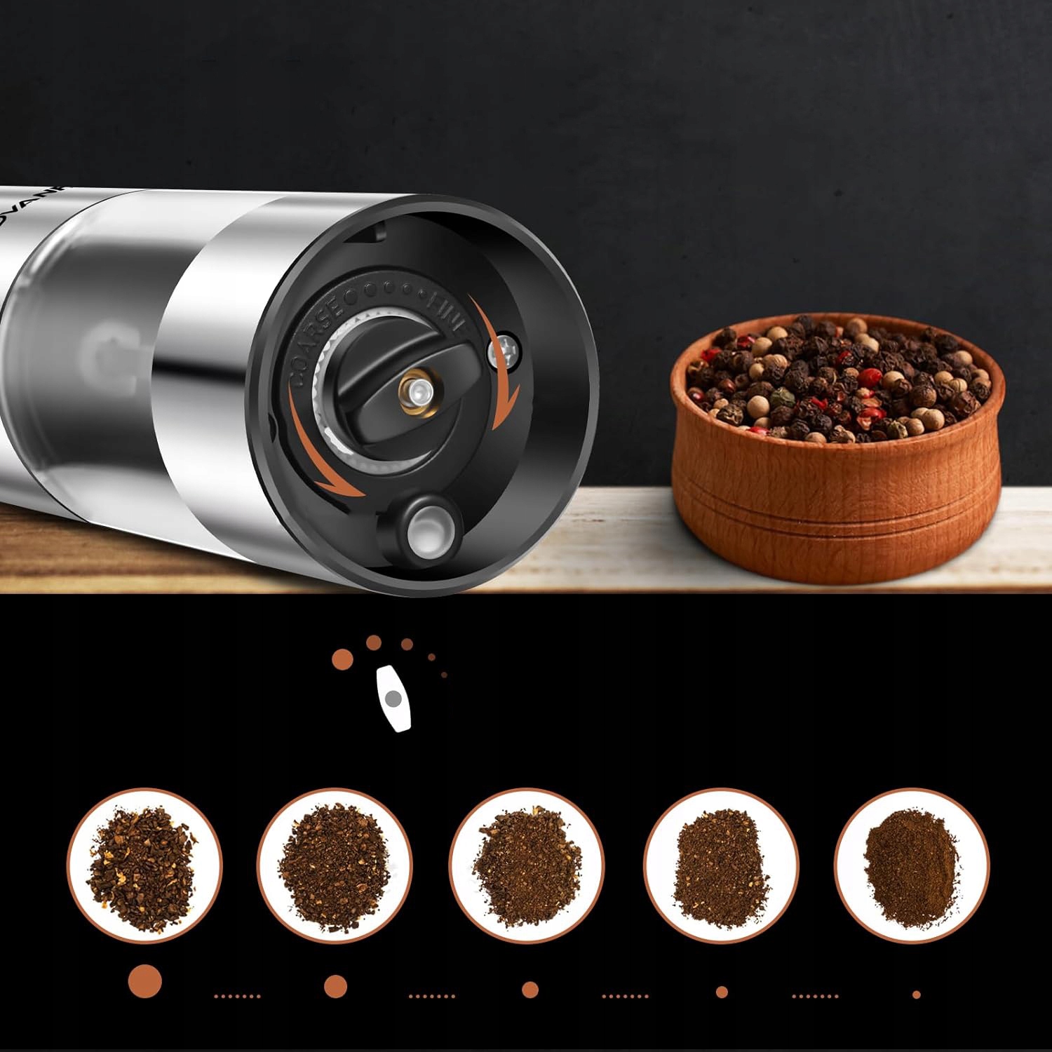 Набор из 2 соли и перца, заряженных через USB, регулируемая толщина