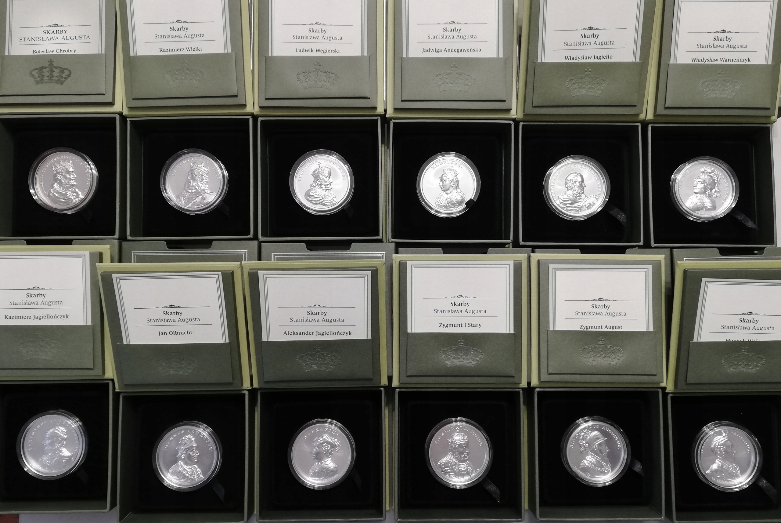 монет приглашает вас купить набор из 21 серебряных монет из уникальной серии b> Сокровища Станислав Август. В общей сложности 42 унции silver ag999, все монеты в состоянии мяты, возможные царапины на крышках, небольшие следы использования на коробках и выбросах, без выбросов до 50 Władysław IV.
