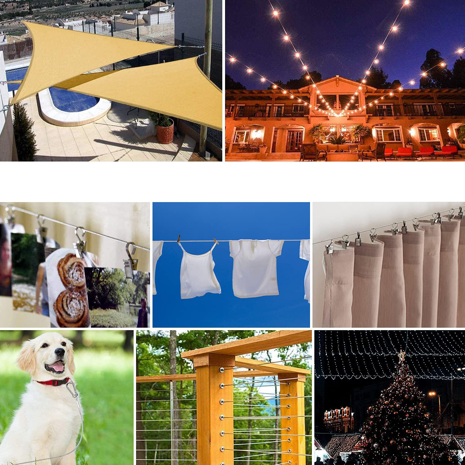 👉 Он не используется только для установки теневых парусов, но он также часто используется в качестве веревок для подвешивания картин, бельевых веревок, световых веревок, перил палубы своими руками, подвесных веревок для декора и т. д.