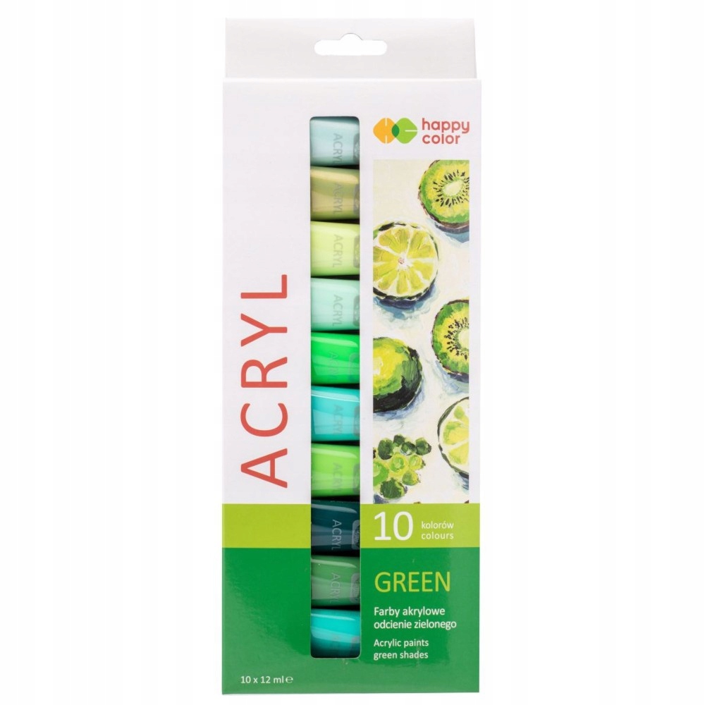 Набір акрилових фарб Happy Color 10 кольорів по 12 мл відтінки зеленого