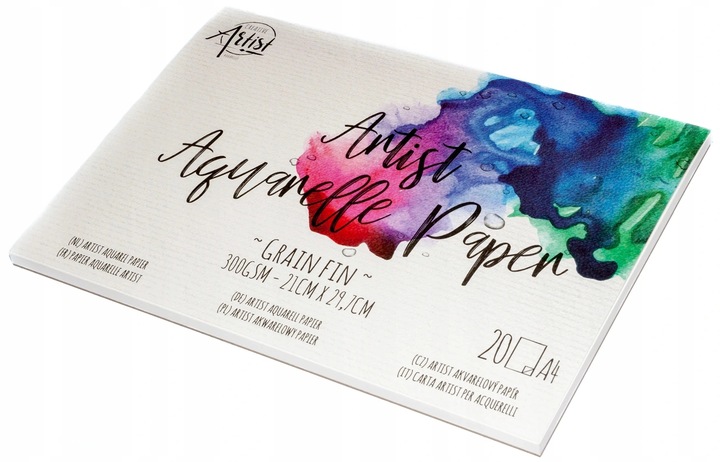 Акварельный блок изготовлен из специальной бумаги плотностью 300 г/м2. Этот вес предотвращает сминание бумаги. Это очень важный аспект при рисовании водоэмульсионными красками.