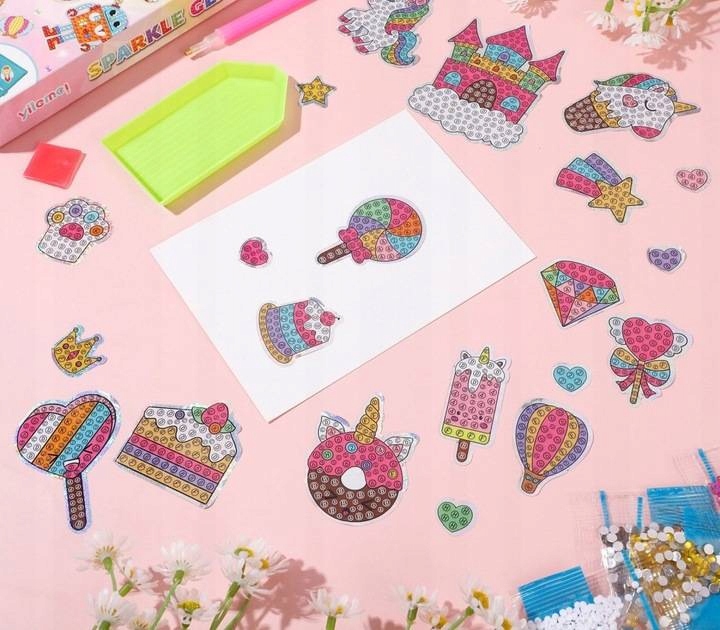 В нашем предложении Вы найдете и другие наборы с разноцветными бриллиантами для приклеивания, а также множество других замечательных творческих наборов для детских игр. Набор упакован в красивую, веселую и красочную картонную коробку.