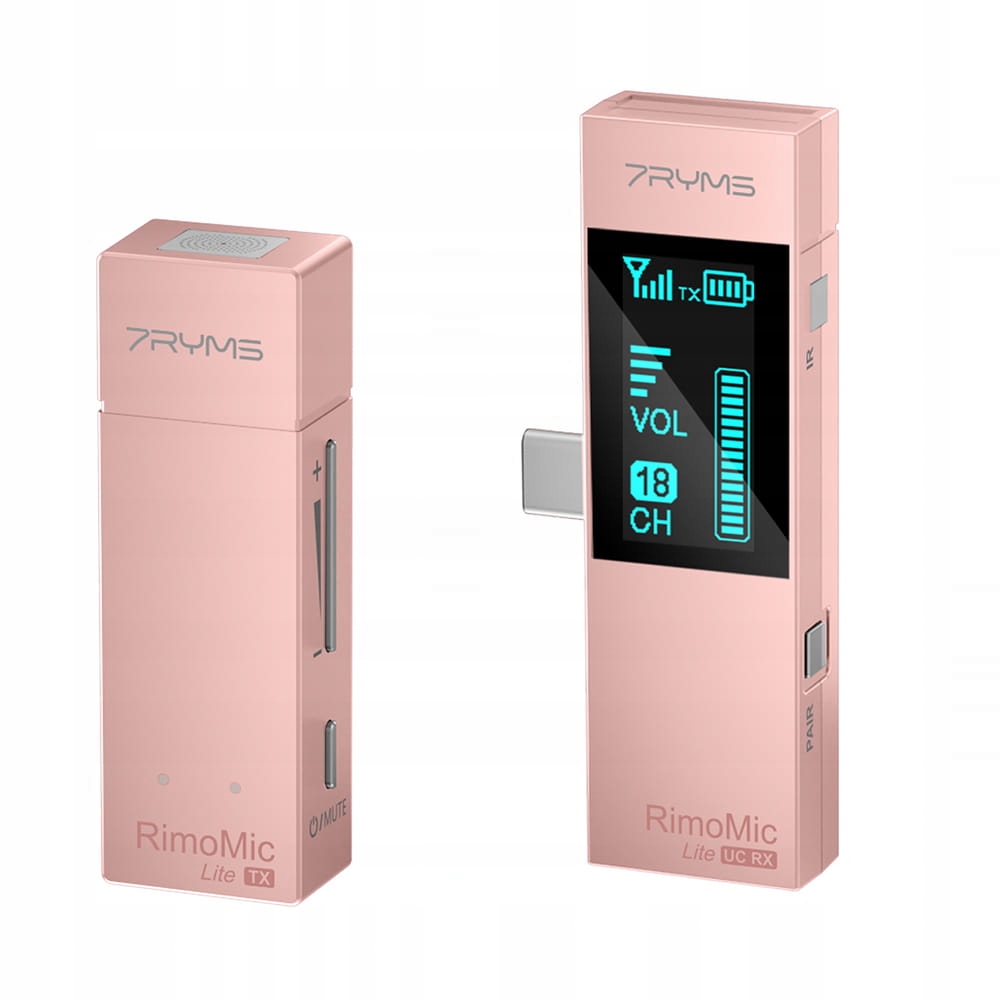 Беспроводной микрофон7Ryms RimoMic Lite для компактного микропорта с разъемом USB-C, предназначенного для смартфонов и планшетов с Android б>. Компактный и простой в использовании комплект состоит из передатчика с зажимом и приемника, подключаемого непосредственно к телефону. Устройства связываются между собой по радиоканалу на расстоянии до 30 м (в зависимости от препятствий на местности), используя радиоволны UHF (сверхвысокой частоты). RimoMic Lite обеспечивает до 48 рабочих каналов, что позволяет легко установить стабильное соединение даже в сложных условиях, например, на съемочной площадке с другими устройствами, общающимися по радио.