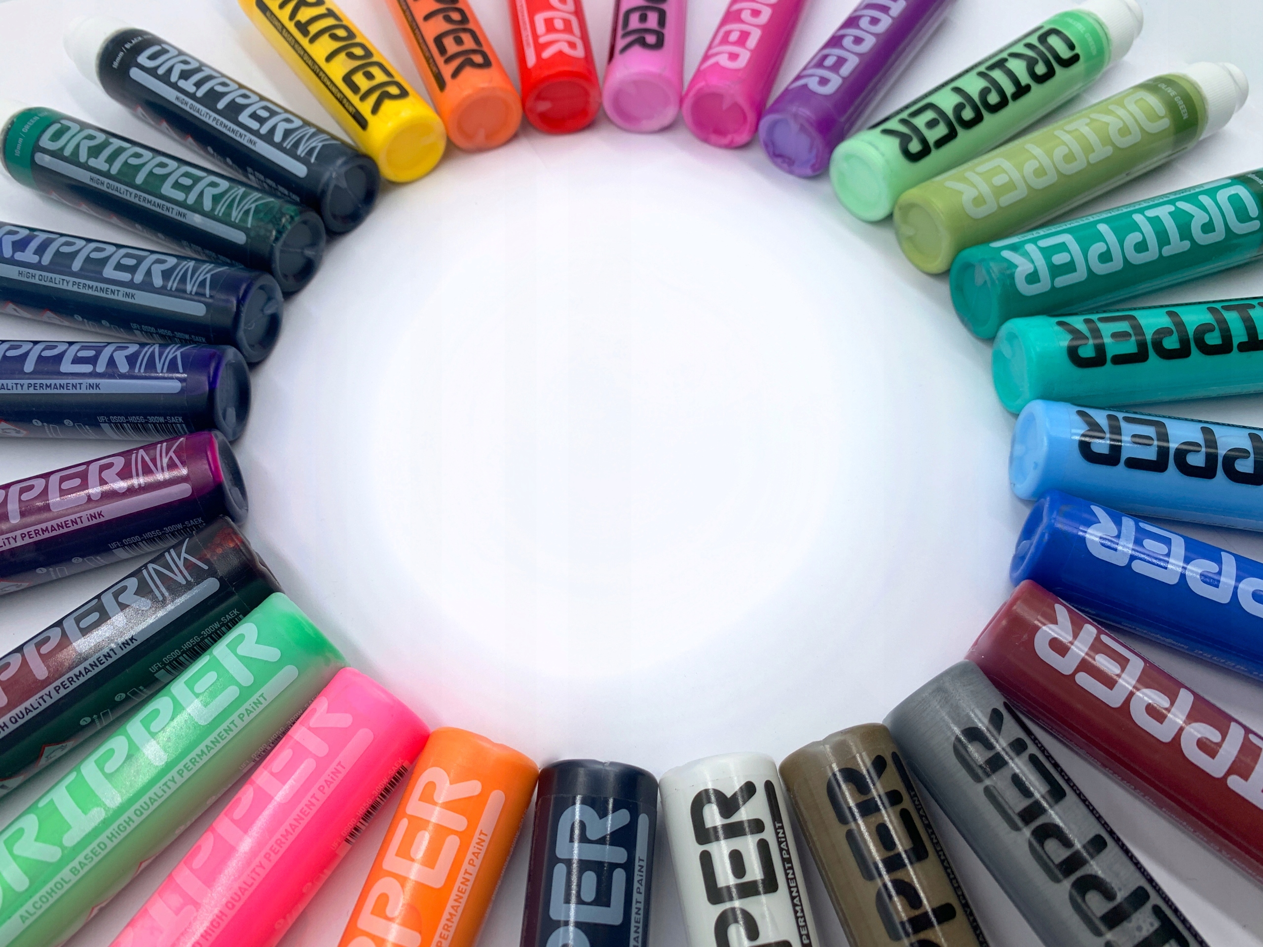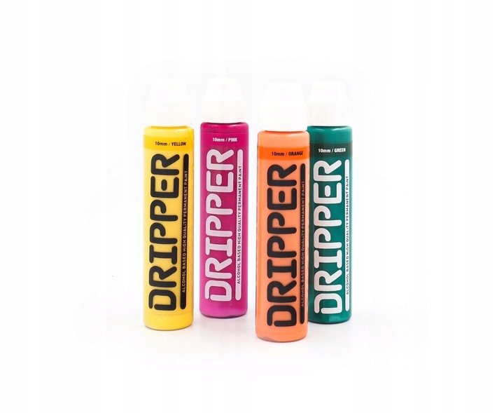 DRIPPER маркеры перманентны и идеально подходят для использования на многих поверхностях. Они содержат краску на спиртовой основе, устойчивую к истиранию и водостойкости. Маркеры устойчивы на впитывающих материалах, таких как бумага и дерево, и их можно удалить с блестящих поверхностей скребком.