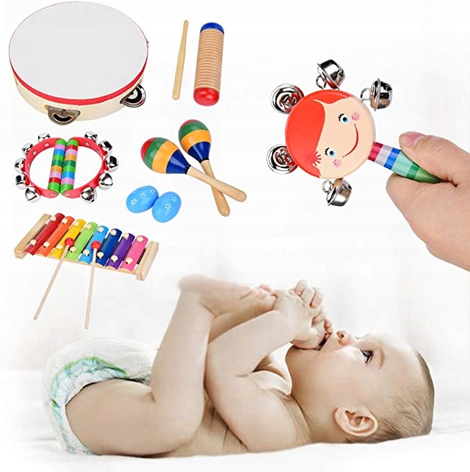 - Ultimate Music Collection:в набор входят ударные игрушки, ударные инструменты, деревянные малаки, барабанные палочки ритмичные, колокольчики и так далее.