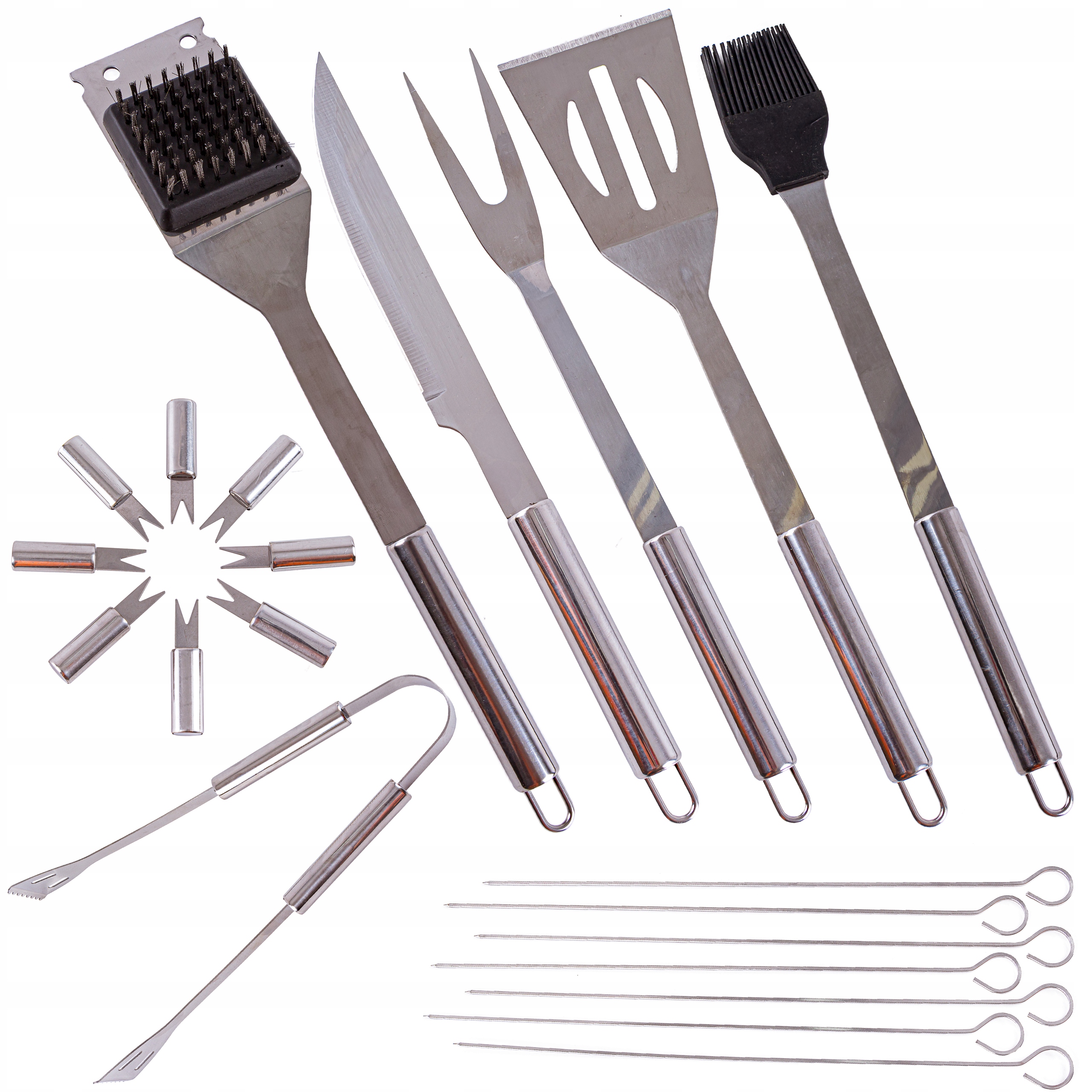 Наш набор содержит 21 тщательно отобранный прибор для гриля, изготовленный из нержавеющей стали высочайшего качества. Каждый элемент был разработан с учетом функциональности, долговечности и удобства использования.