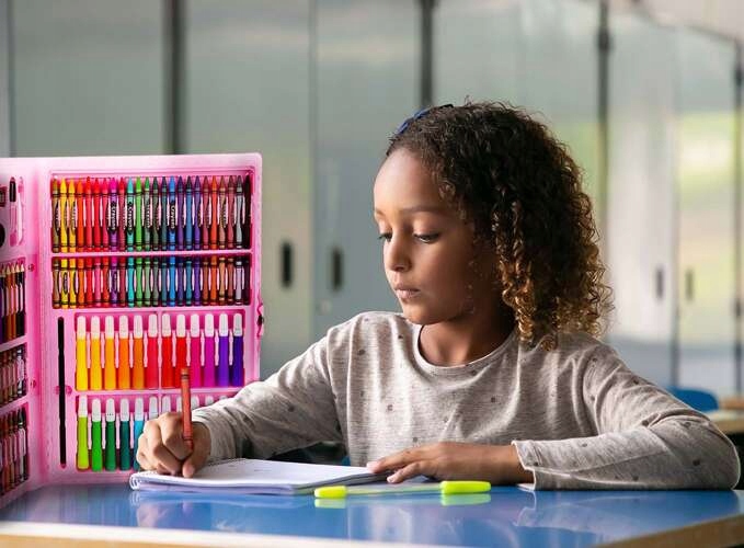 - 168 ЭЛЕМЕНТОВ – используем огромный выбор: 24 мелка, 24 маркера, 48 масляных пастелей, 48 свечных пастелей, 12 акварельных красок, точилку, карандаш, клей, консилер , ластик, листы бумаги а4мы с легкостью создадим самые изысканные, креативные и оригинальные работы.