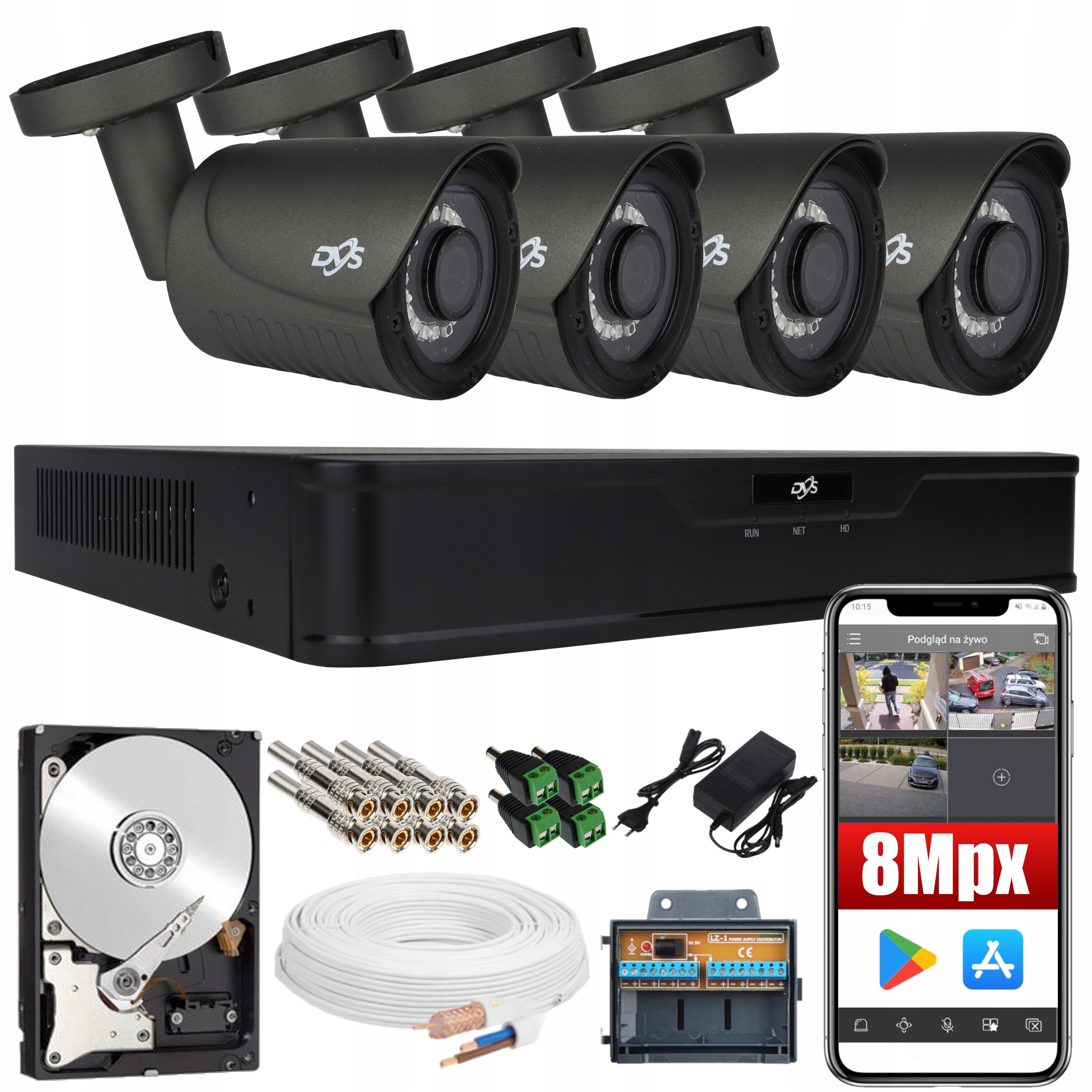 НАБІР ДЛЯ МОНІТОРИНГУ 4x ЗОВНІШНІ АНАЛОГОВІ КАМЕРИ 1TB 8Mpx ULTRA HD BLACK DVS