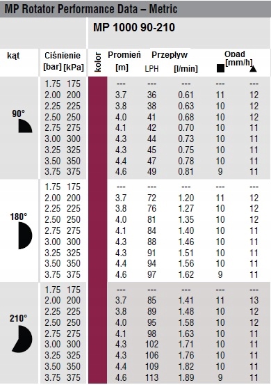 - 10 MP Rotator Hunter 1000 90-210 поворотный форсунки, дающие диапазон 0d 2,5–4,5