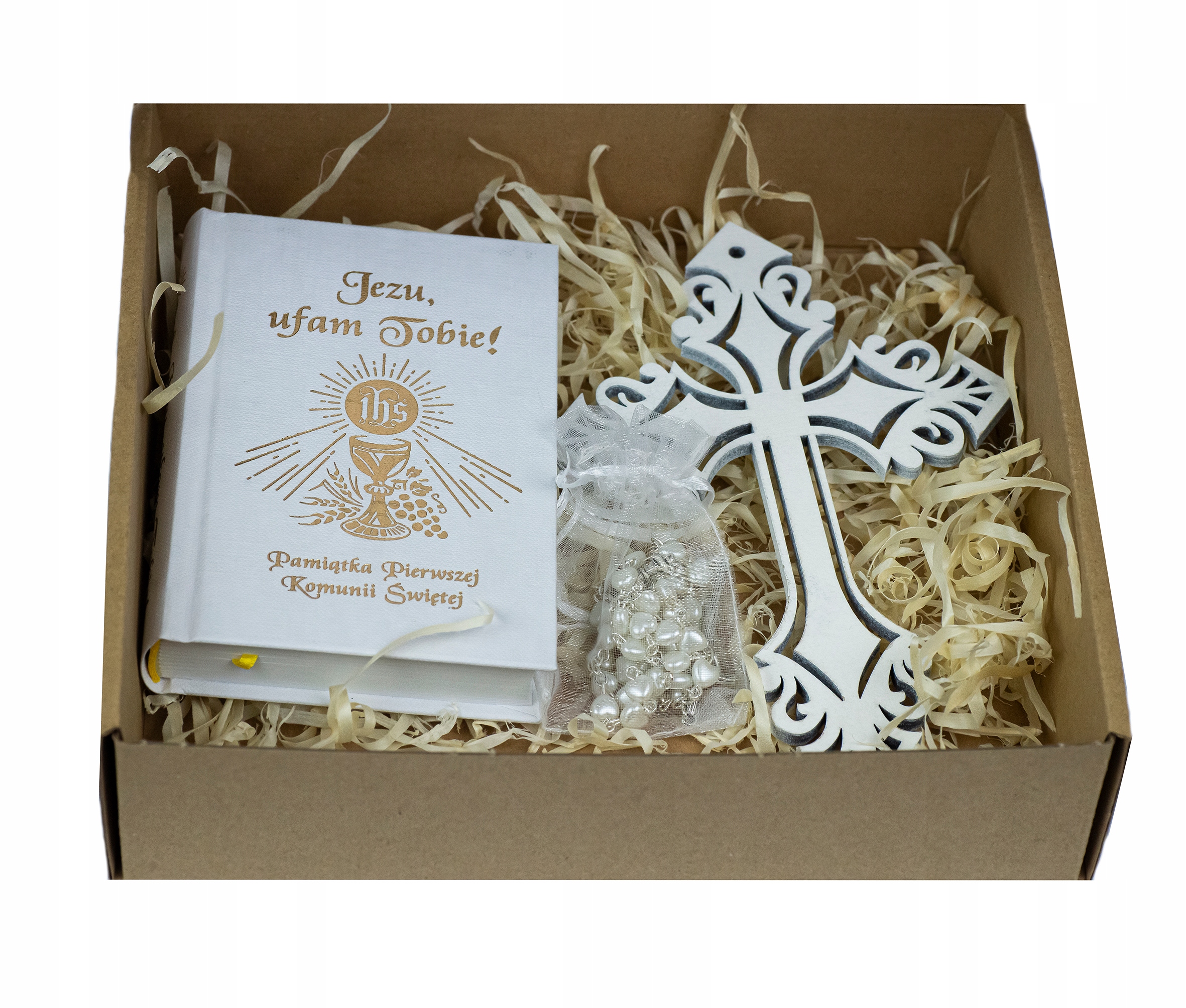 НАБІР ДЛЯ ПРИЧАСТЯ Розарій Серця Молитовник БІЛИЙ ХРЕСТ Дерево