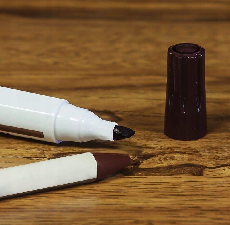 - маркеры используются в местах, подверженных истиранию – углах мебели, ножках. столов и стульев. Пигмент, содержащийся в маркере, позволяет исключить видимость сколов.