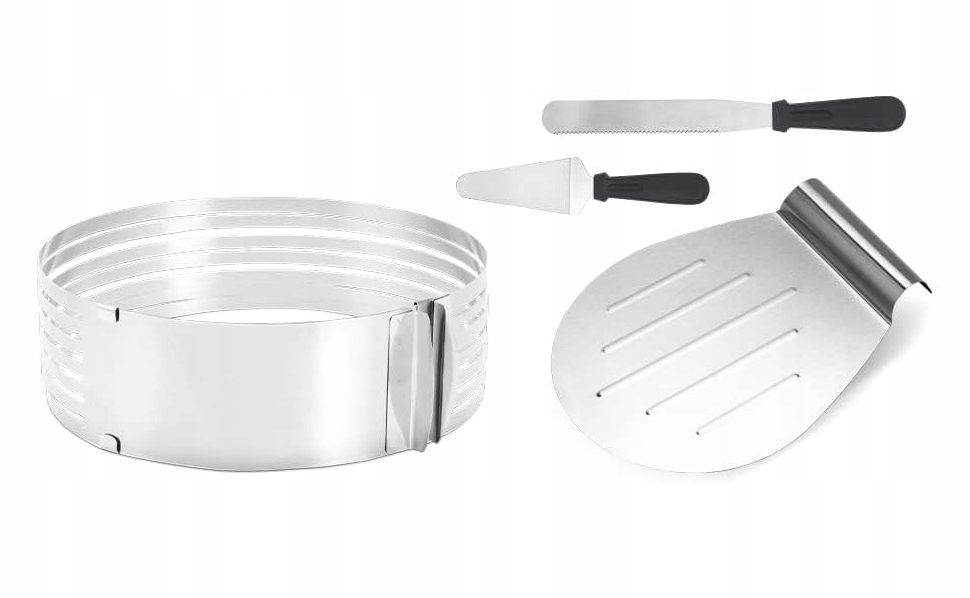 Регулируемый размер кольца для торта: Диаметр кольца для торта можно регулировать от 23 до 30 см, поэтому его можно гибко подогнать под размер торта. Вместе с профессиональным ножом разрезает 8 равных коржей.