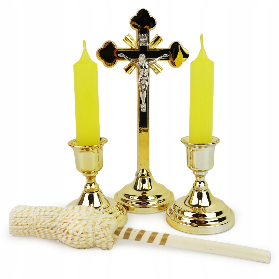 НАБОР ТРАДИЦИОННЫЙ КЭРОЛ, ЗОЛОТО, 19см, НАБОР КЭРОЛ, КРЕСТ, СВЕЧИ, КЭРОЛ