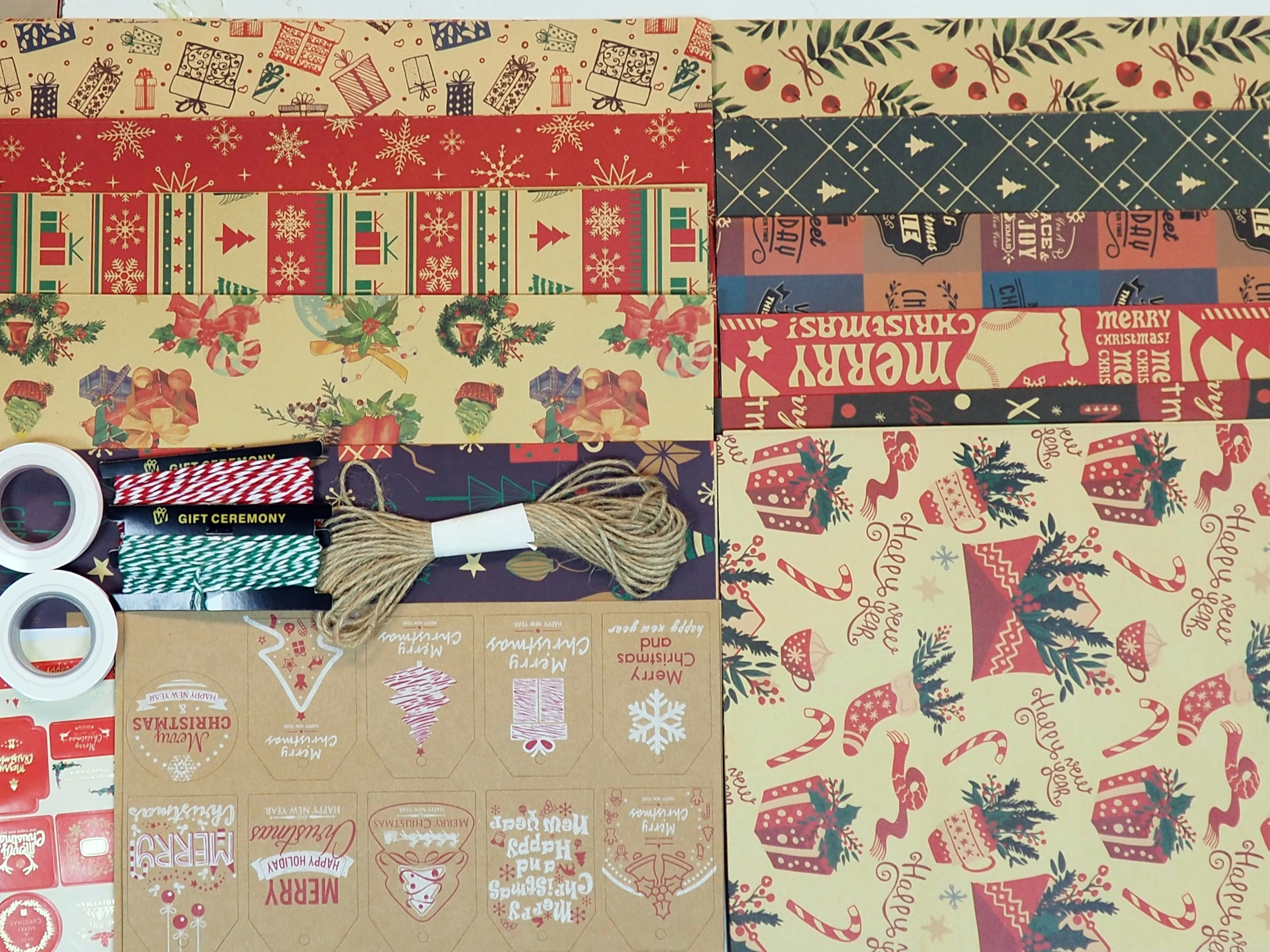- 12 упаковочных бумаг для рождественских подарков с джутовыми нитками и наклейками. Повысьте качество подарков с помощью роскошной упаковочной бумаги для праздничных подарков, изготовленной из высококачественных экологически чистых материалов. Эта прочная упаковочная бумага устойчива к разрывам и имеет красивую текстуру, благодаря чему ваши подарки будут выглядеть элегантно и прочно.
