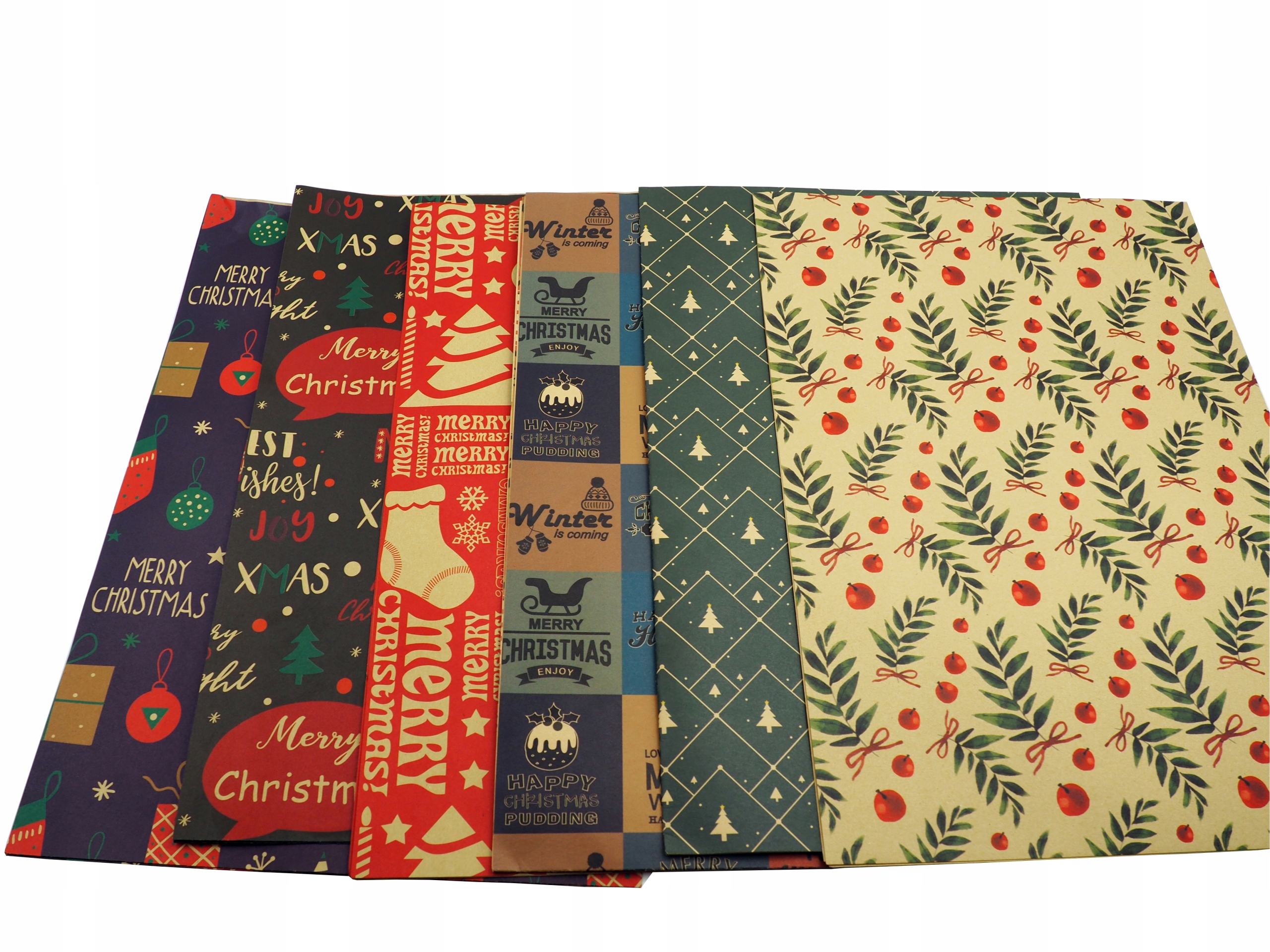 12 различных классических рождественских узоров Рождественская елка, снежинка и другие узоры, классические цвета на крафт-бумаге, выглядят очень элегантно (винтажно), наверняка сделают ваши подарки более привлекательными и впечатляющими.