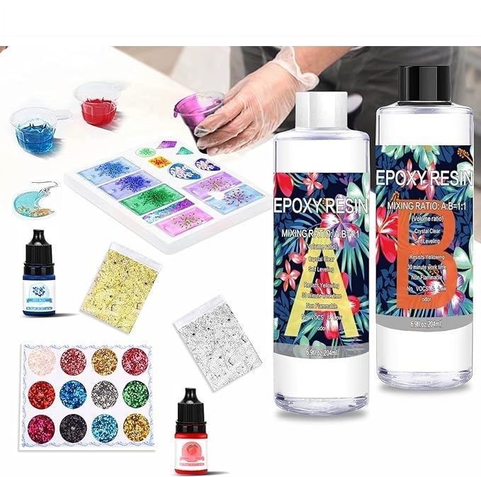 НАБІР ДЛЯ ВИТРИВАННЯ ЕПОКСИДНОЇ СМОЛИ ФОРМИ БАРВНИКИ АКСЕСУАРИ 200 МЛ ПОДАРУНОК