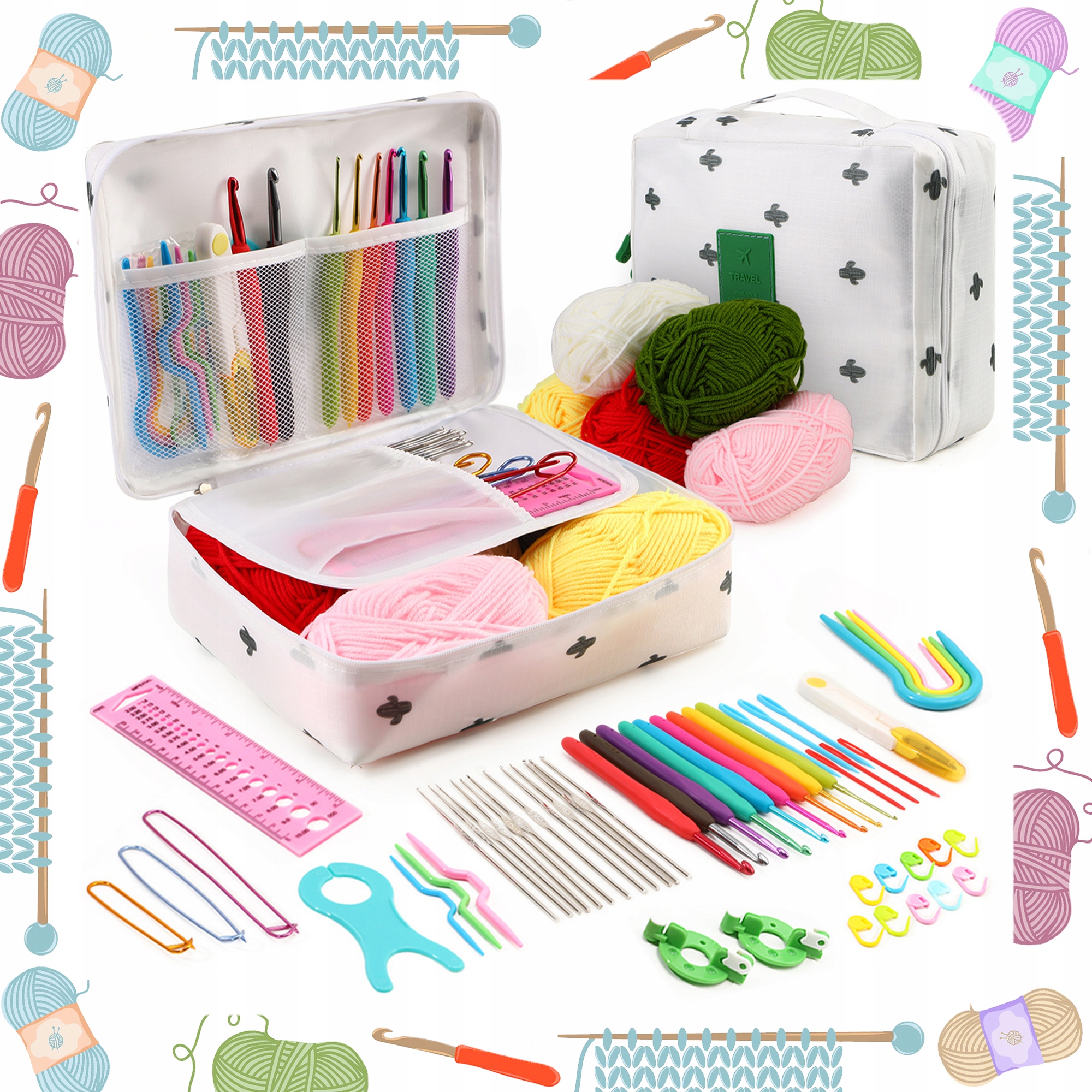 НАБІР ДЛЯ В'ЯЗАННЯ ПРЯЖА ГАЧКОМ 58 ЕД. МАРКЕРИ АКСЕСУАРИ З ЧОХЛАМИ