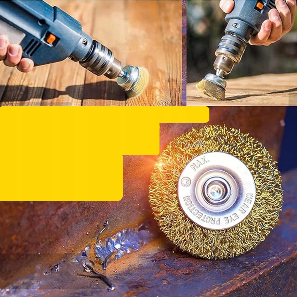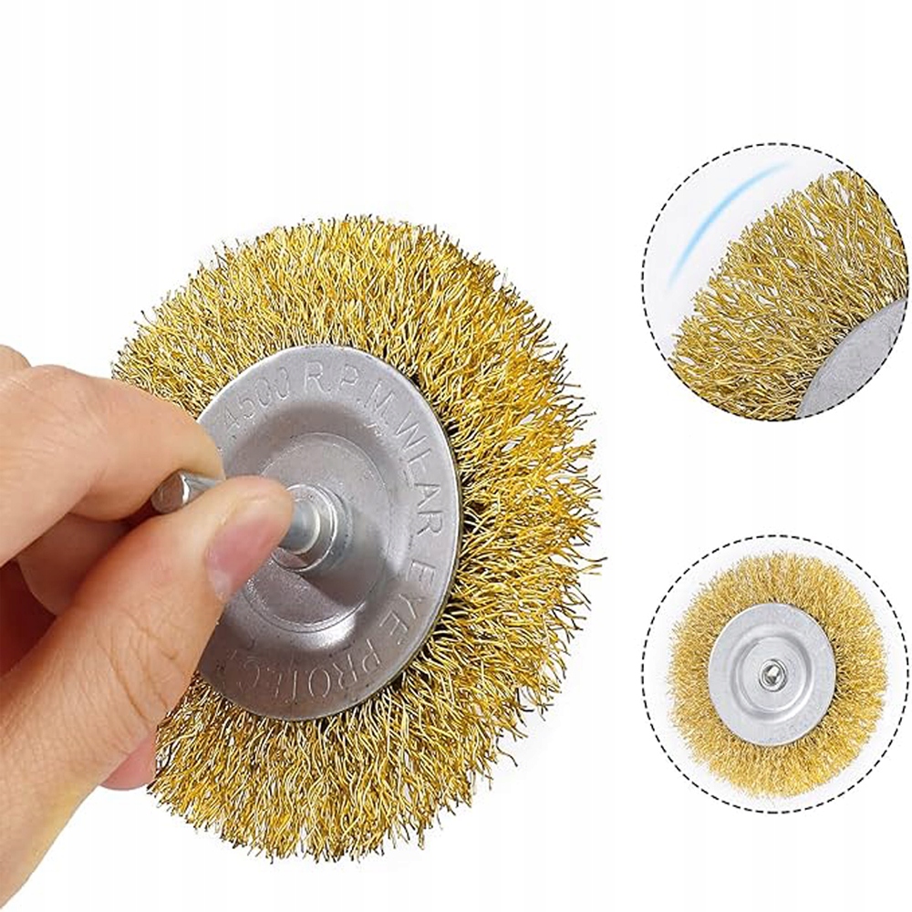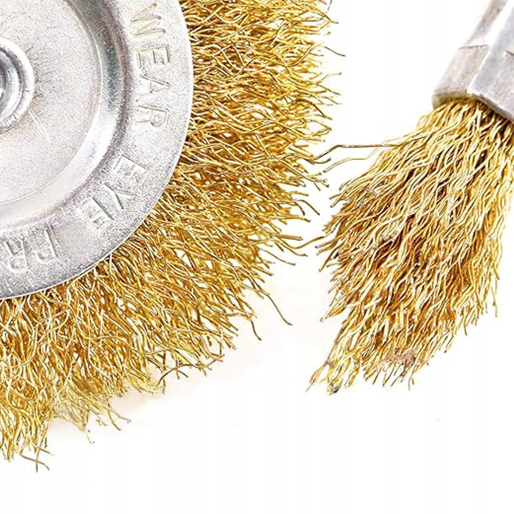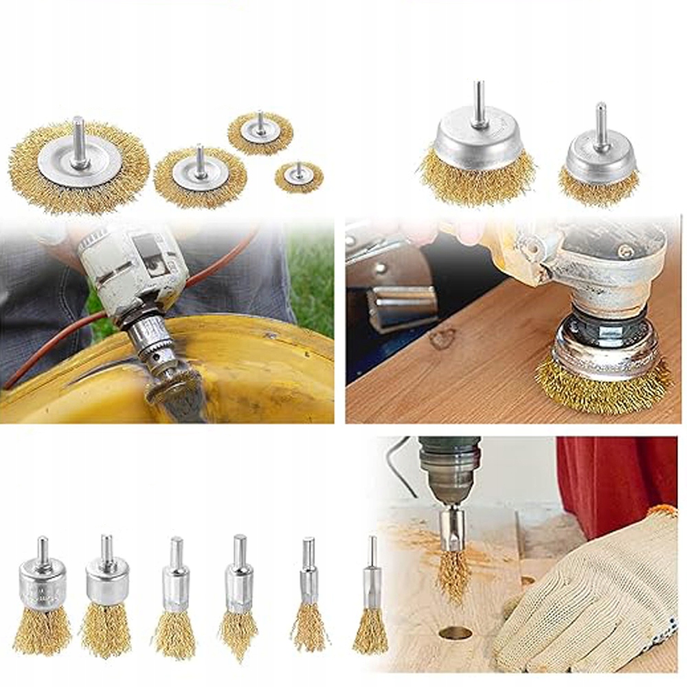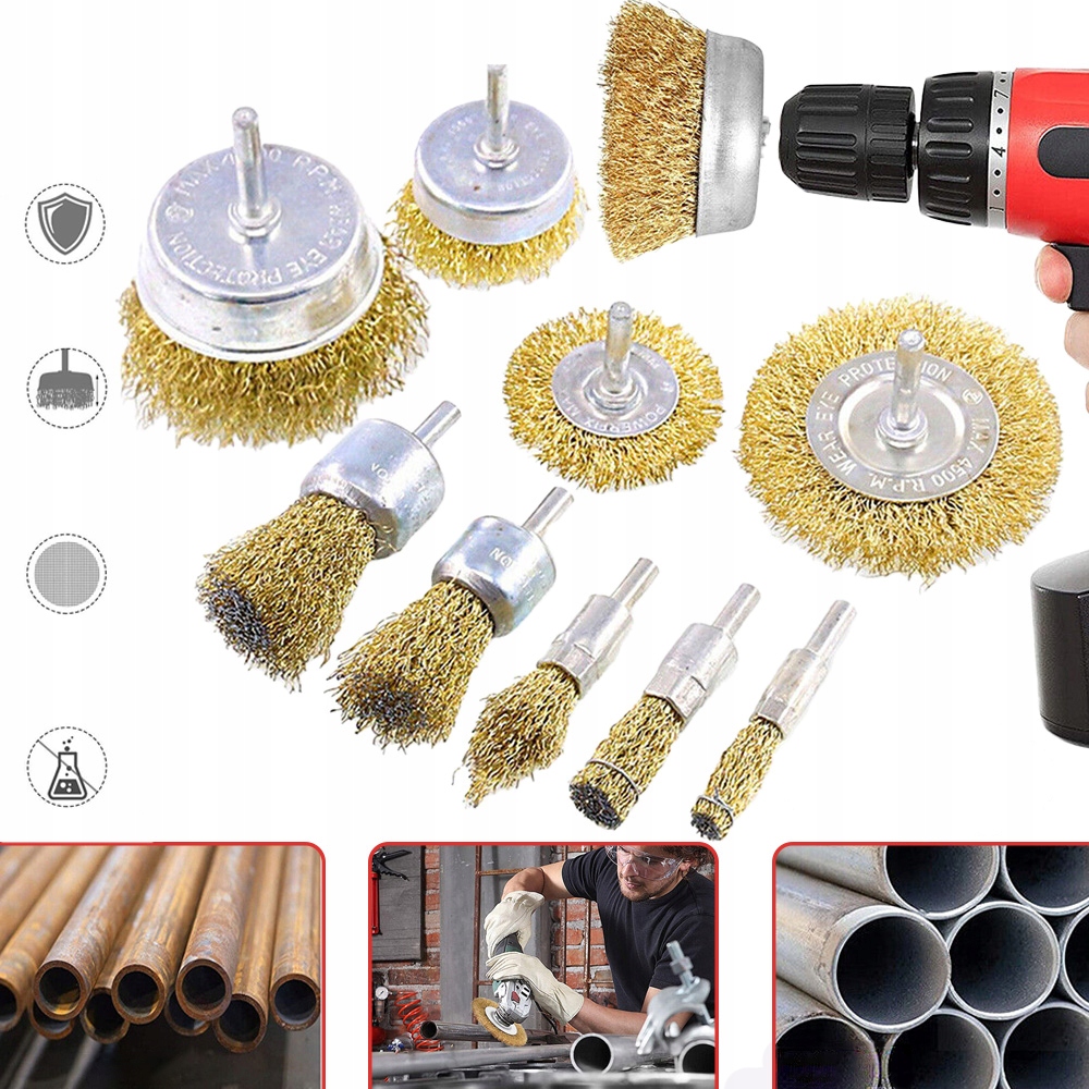 - 9 кусочков проволочных кистей: набор латунных щетков Проволочные щетки для сверл содержит 9 различных размеров проволочных щетков для сверл (чашка, колеса и конец). Идеальный набор для различных материалов и применений в различных условиях труда.