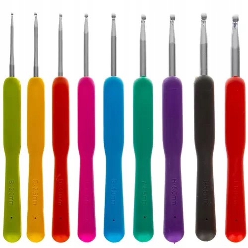 - 12 Красочный вязаный крючок: 2,0, 2,5, 3,0, 3,5, 4,0, 4,5, 5,0, 5,5, 6,0, 6,5, 7,0, 8,0 мм