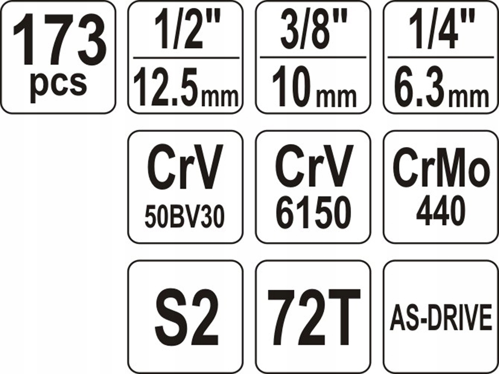 Набор инструментов - клавиши и биты сокета - 173 частей xxl yato yt -38931