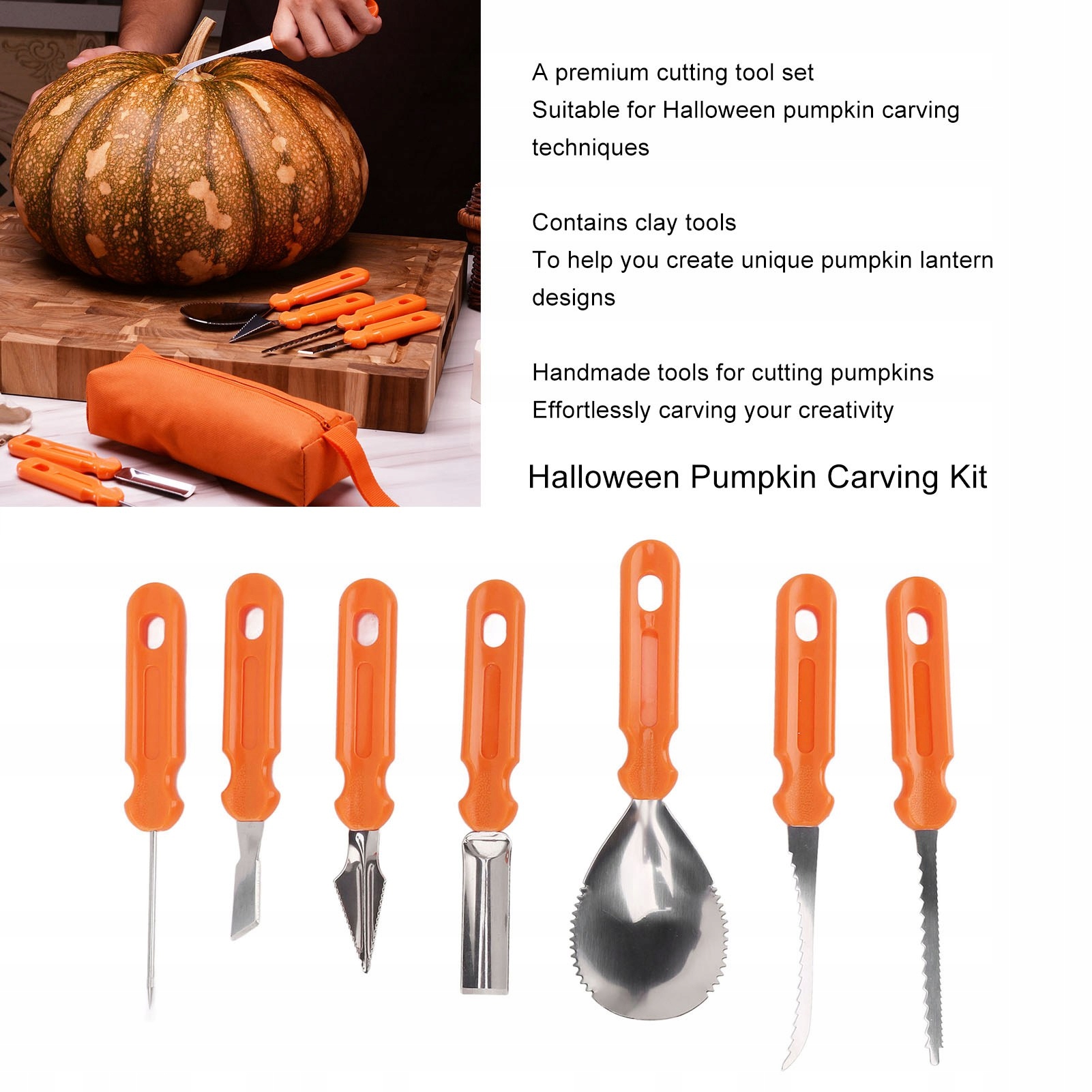 1. Тыквенная скульптура для Хэллоуина: набор инструментов для резьбы тыквы, с превосходной производительностью, красивым внешним видом и надежным действием, подходит для методов скульптур на тыкве на Хэллоуин.