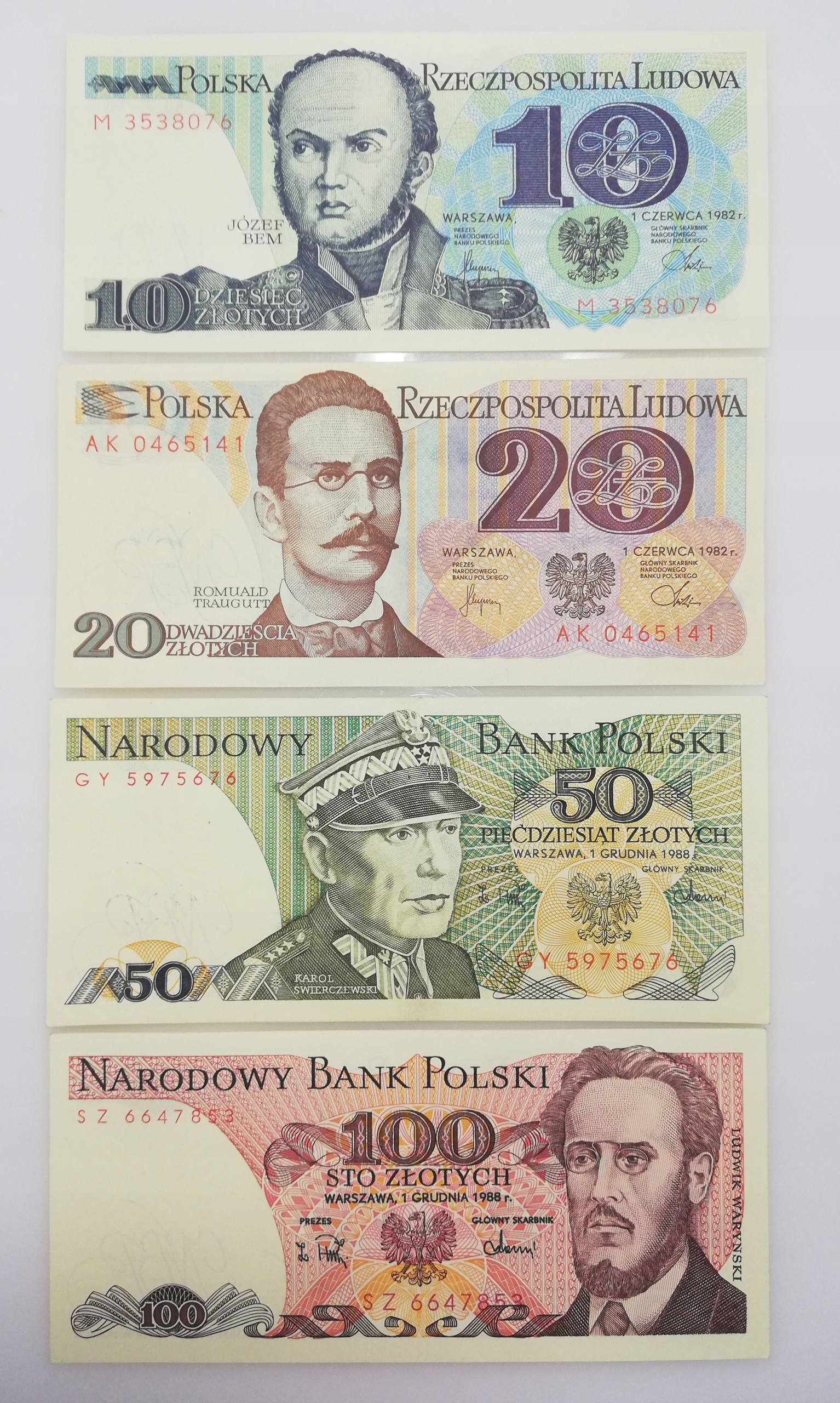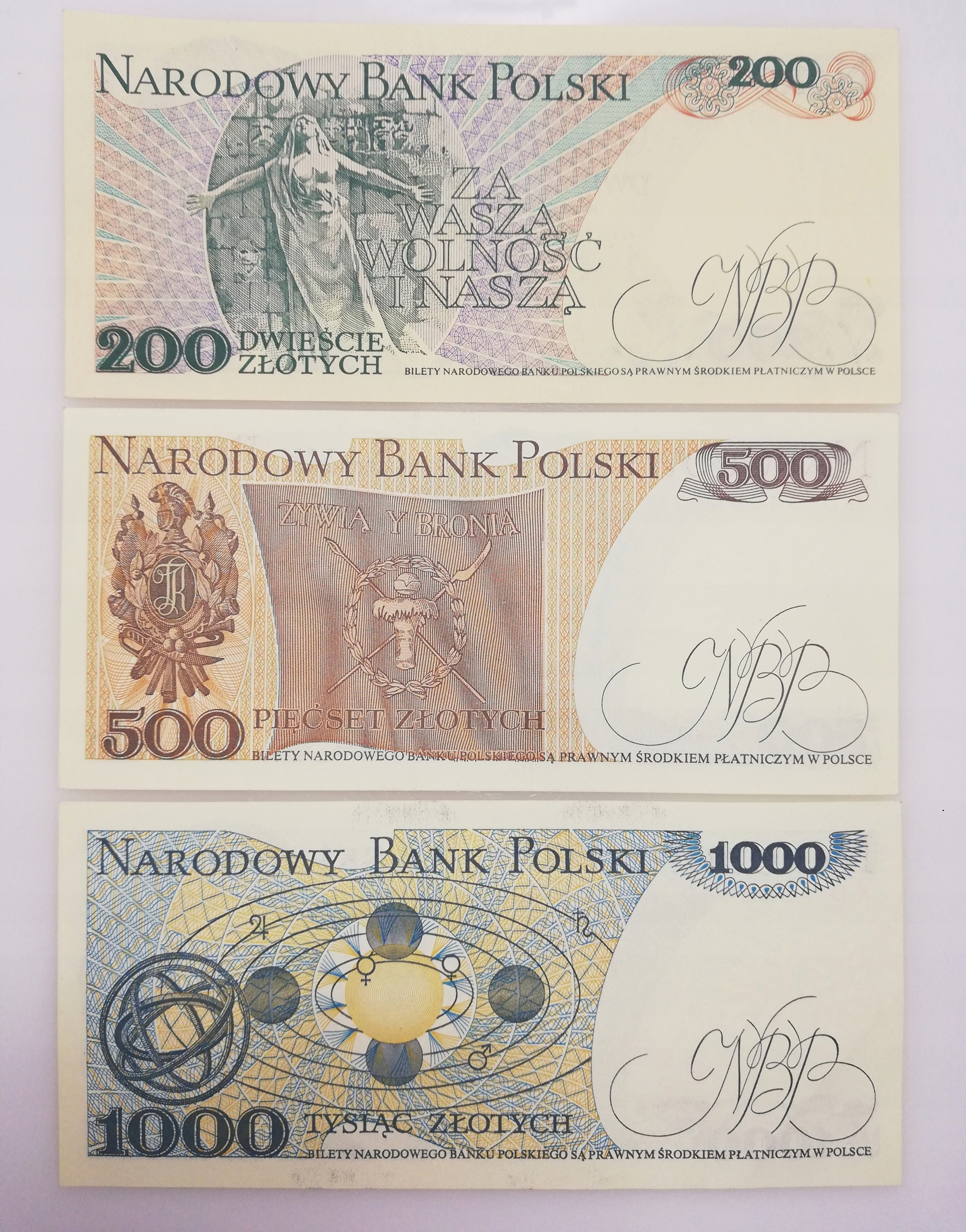 Набор из 7 банкнот PLN 10 - PLN 1000 1982 - 88 PRL Stan UNC/UNC - разные серии