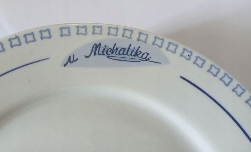 Предмет аукциона — набор из 7 десертных тарелок времен Польской Народной Республики с логотипом «Сполем», покрытым логотипом катовицкого ресторана «У Михалик».