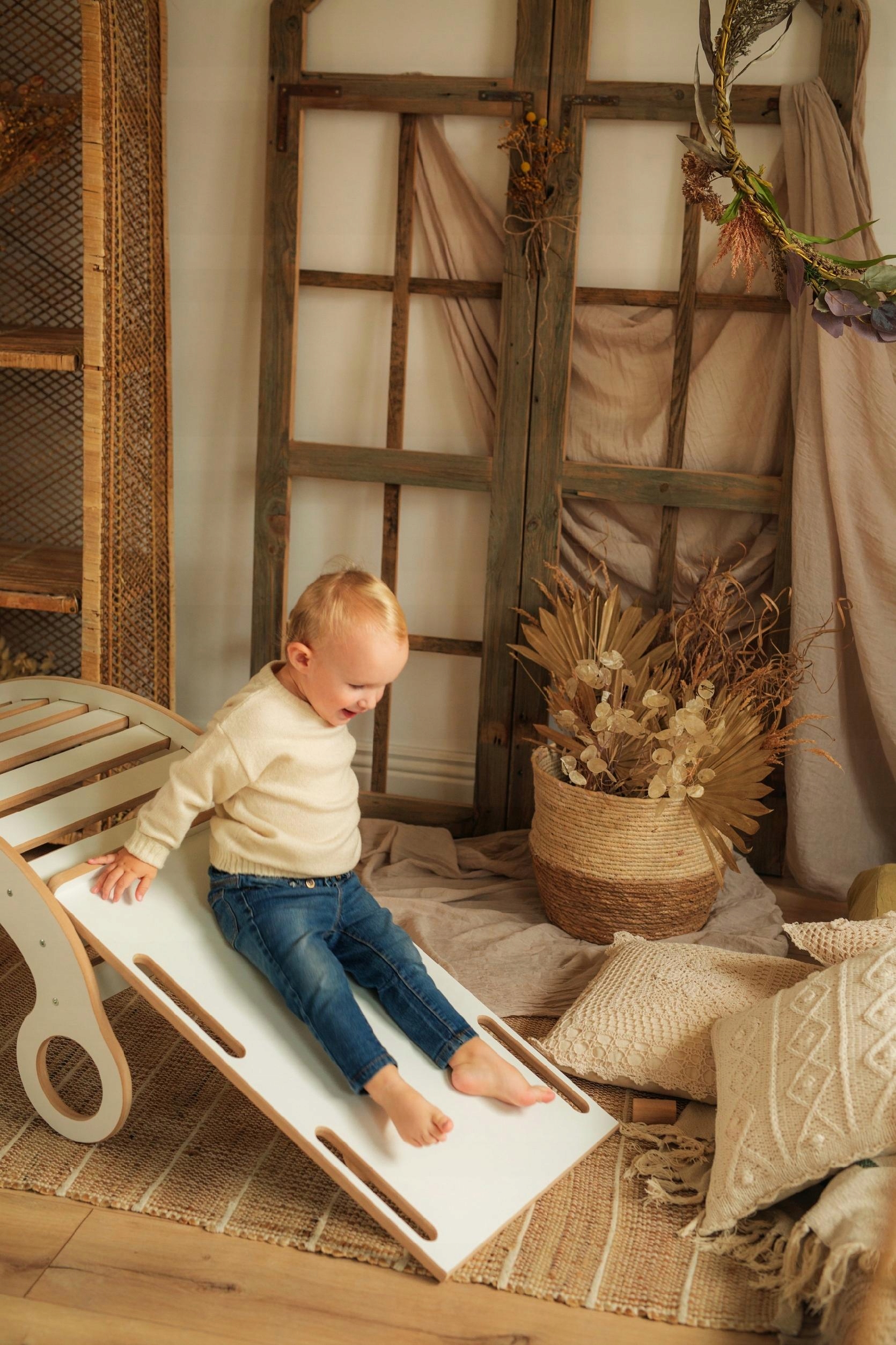set: сертифицированный Montessori Bocka + Стена скалолазания + слайд + подушка для Rush Beige h1>