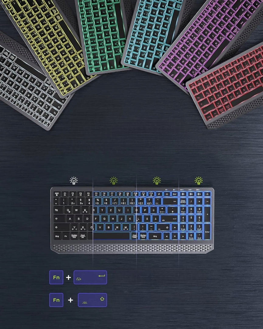 Беспроводная Bluetooth-клавиатура Seenda ISJ-SJC05 со светодиодной подсветкой, бесшумная, многофункциональная, 3 BT, раскладка QWERTZ (немецкий язык), черная