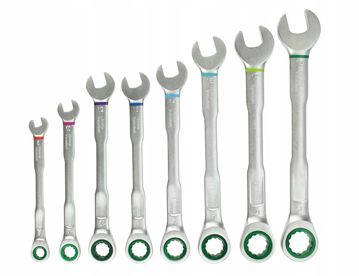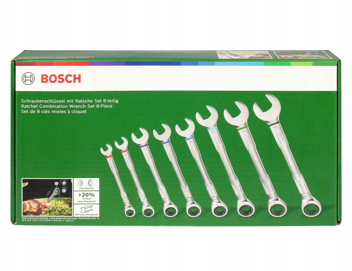 Набор из 8 комбинированных ключей с храповым механизмом от BOSCH.