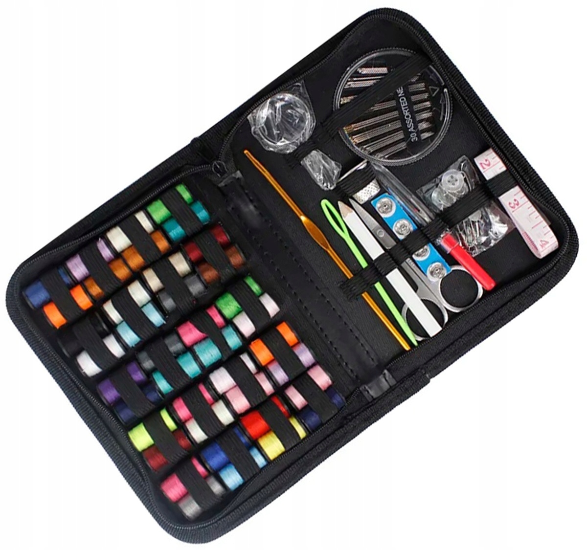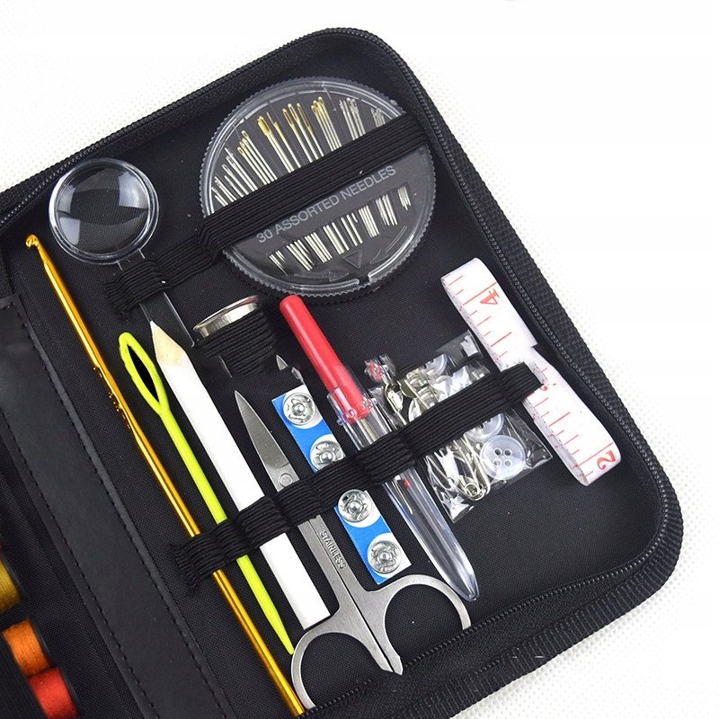 ✅ В практичном кейсе на молнии достаточно места для > Ассортимент аксессуаров(иголки, нитки, булавки, ножницы, рулетка и т. д.).