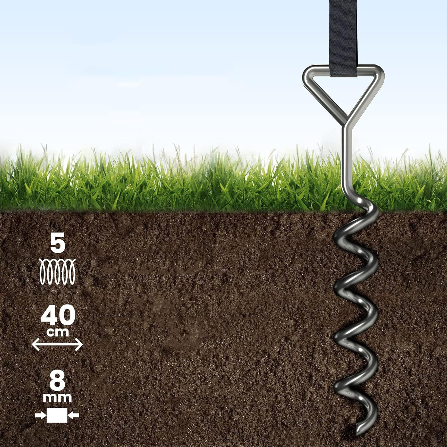 ➡️ Что вы получаете: монтажный комплект, состоящий из 4 спиральных анкеров и 4 полиэфирных полосок. Подходит не только для батутов, но и для качелей, теплиц, палаток, детских горок, игровых башен и т. д.