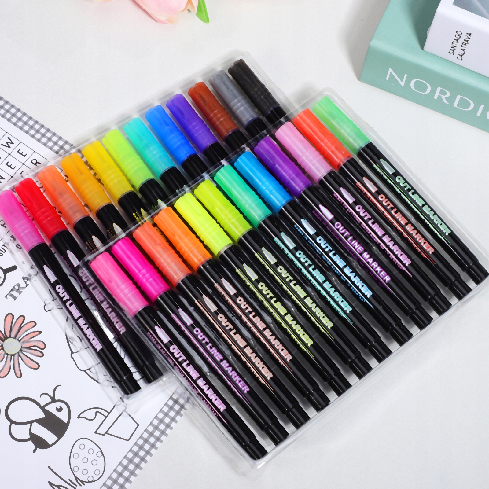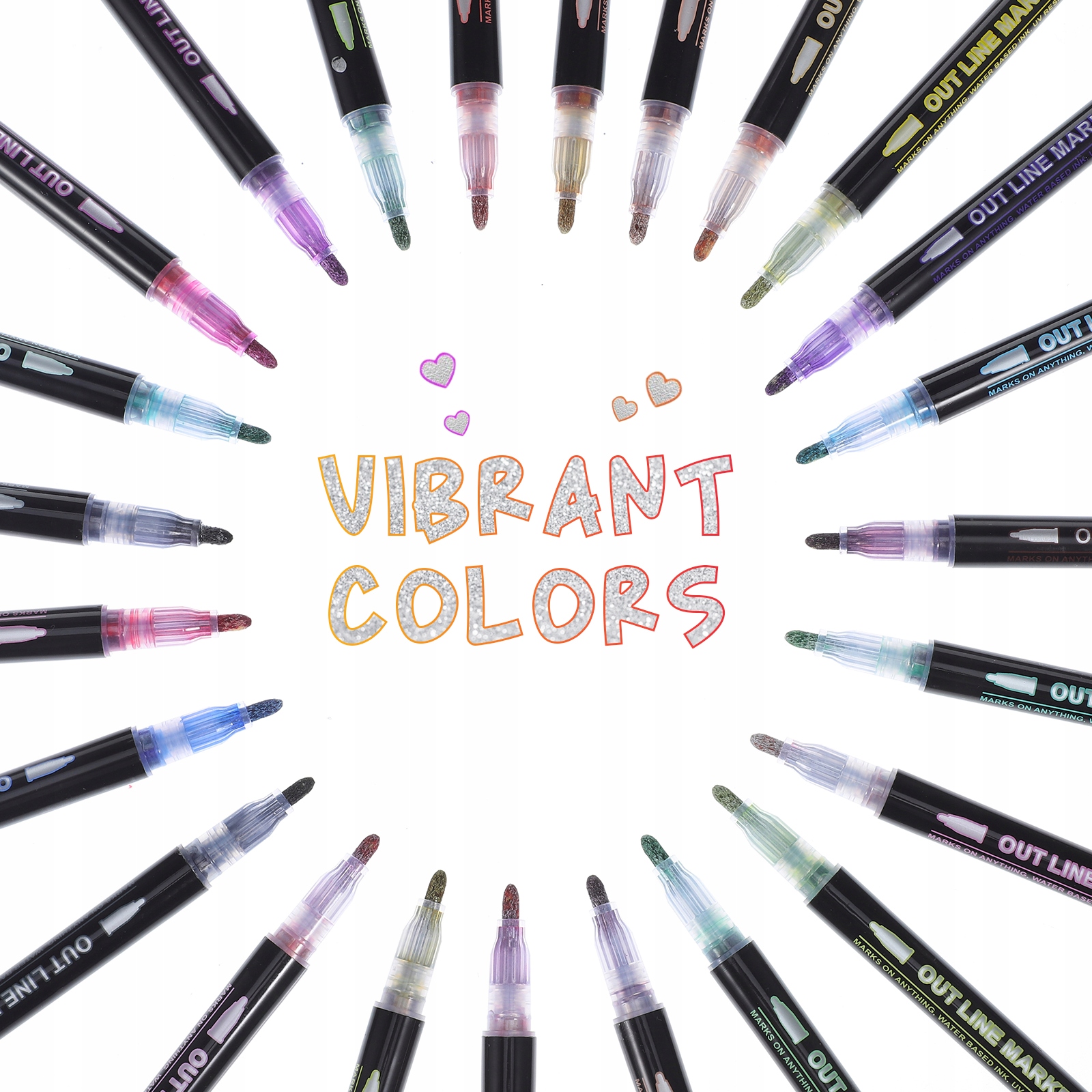 ✅ 【Уникальные двойные маркеры и блестящие маркеры】 Уникальная технология автоматически генерирует контуры для создания красивого двухцветного эффекта для вас. Эти маркеры самостоятельно пишут с серебряным металлическим текстом вокруг цветной границы. Добавьте блестящий акцент в различные ручной работы. линии