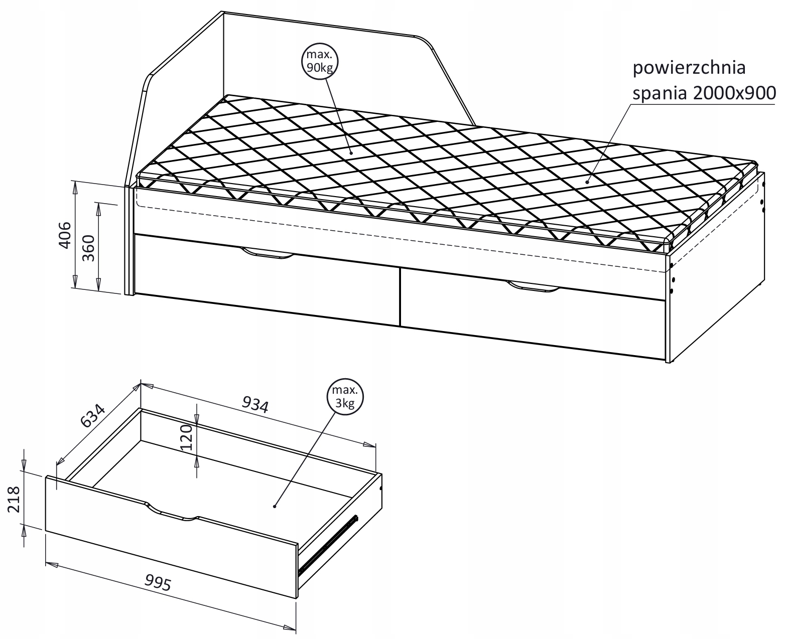 - Melo_M9– кровать с ящиками - 95,8 x 74,6 x 204,8