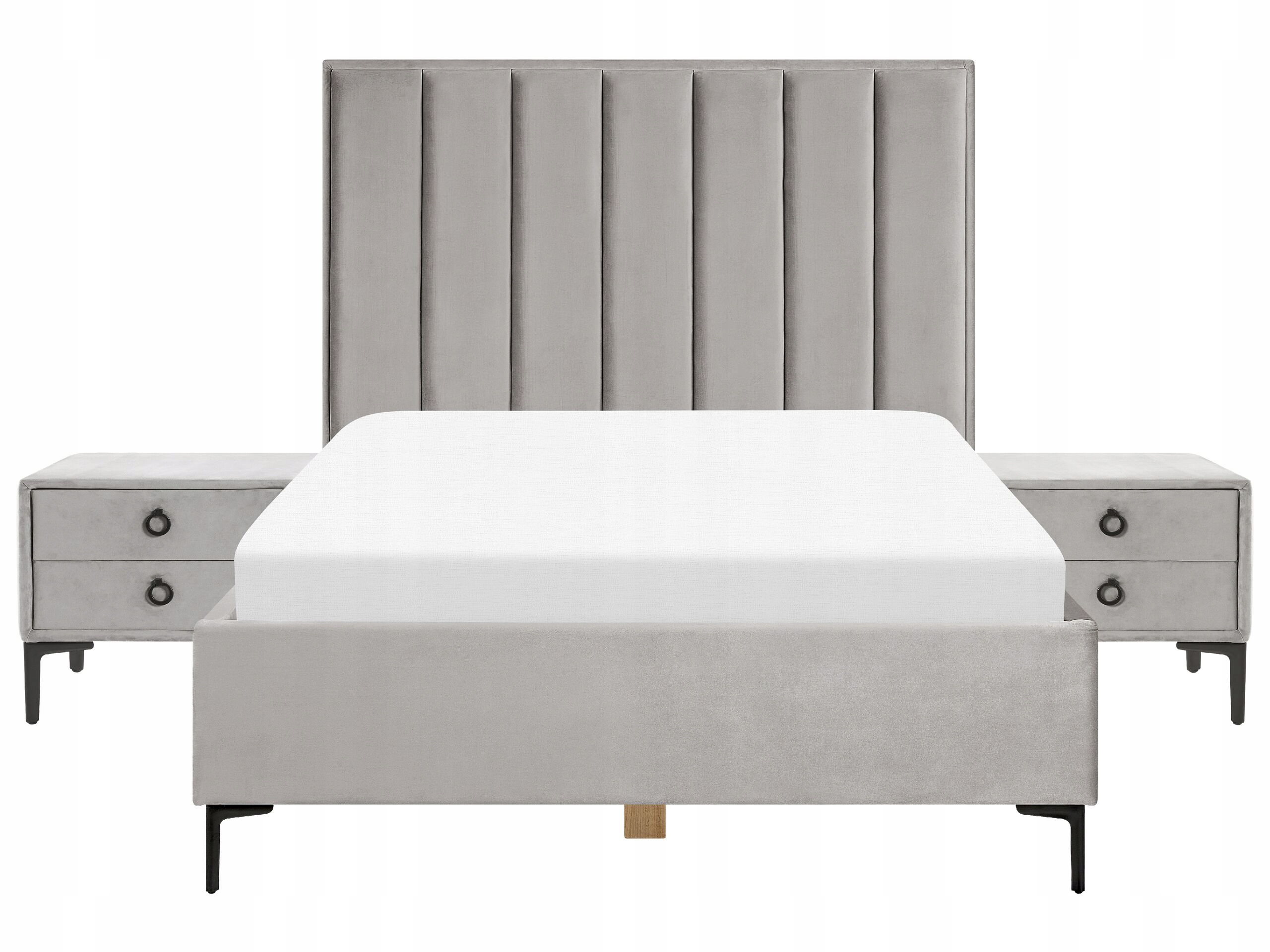 Этот отличный набор мебели является отличным дополнением к каждой спальне. Классические формы и красивая обивка - это вечная комбинация, которая добавит элегантность и подчеркнет современные аранжировки. Сплошная рама кровати покрыта высококачественным велюром, который, благодаря характерной структуре, придает ей роскошный вид. Смотриная коробка передач позволяет оптимальной организации пространства, в то время как два стола при постели - отличное место для лампы, свечи или других декоративных элементов