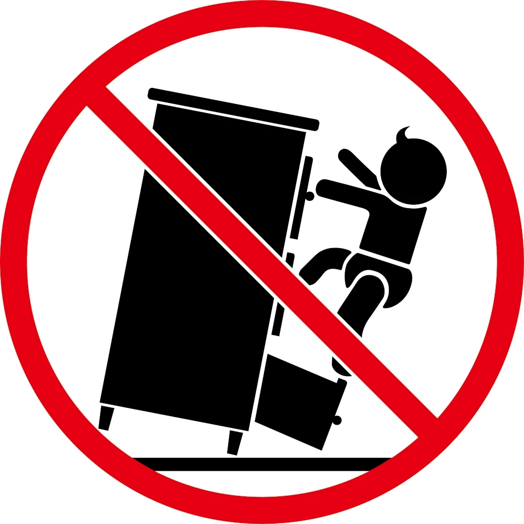 - Чтобы предотвратить продукт, он должен быть прикреплен к стене, используя прикрепленные элементы.