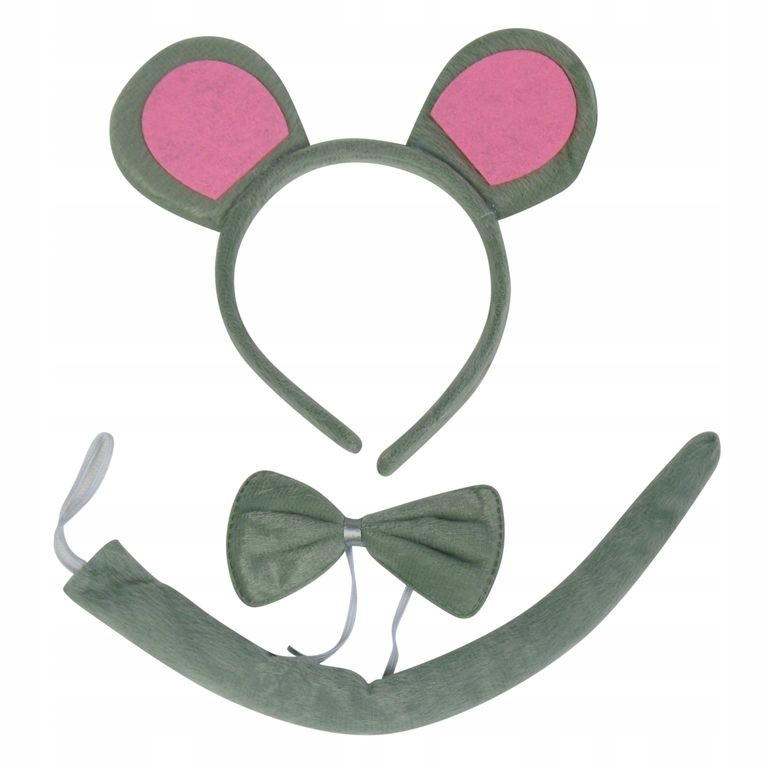 КОМПЛЕКТ ПОВЯЗКА НА ГОЛОВУ УШИ ХВОСТ ГАЛСТИК-БАБОЧКА МЫШЬ СЕРАЯ МЫШЬ